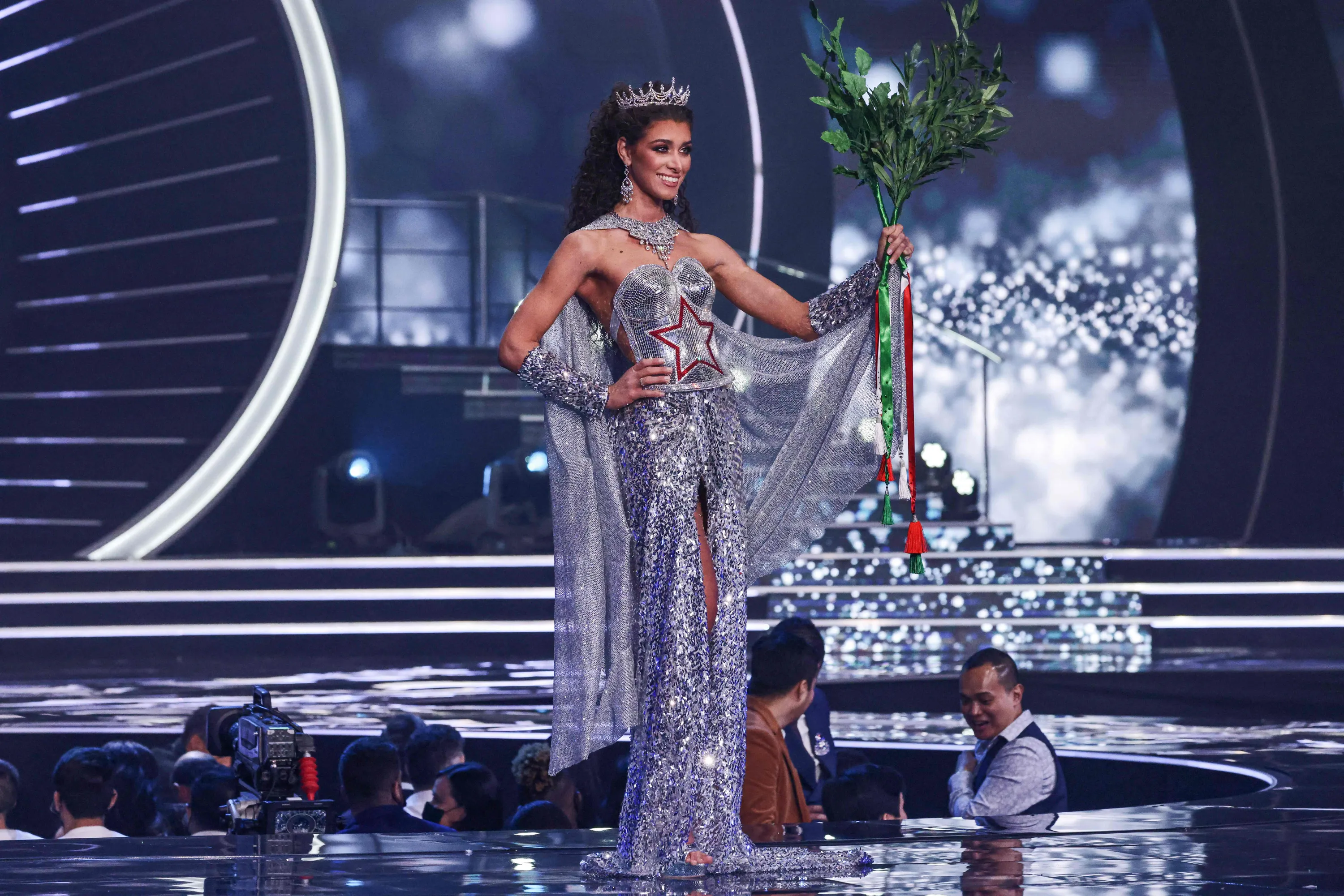 Miss Italy, Caterina Di Fuccia, appears on stage during the national costume presentation of the 70th Miss Universe beauty pageant in Israel's southern Red Sea coastal city of Eilat on December 10, 2021. (Photo by Menahem Kahana/AFP Photo)