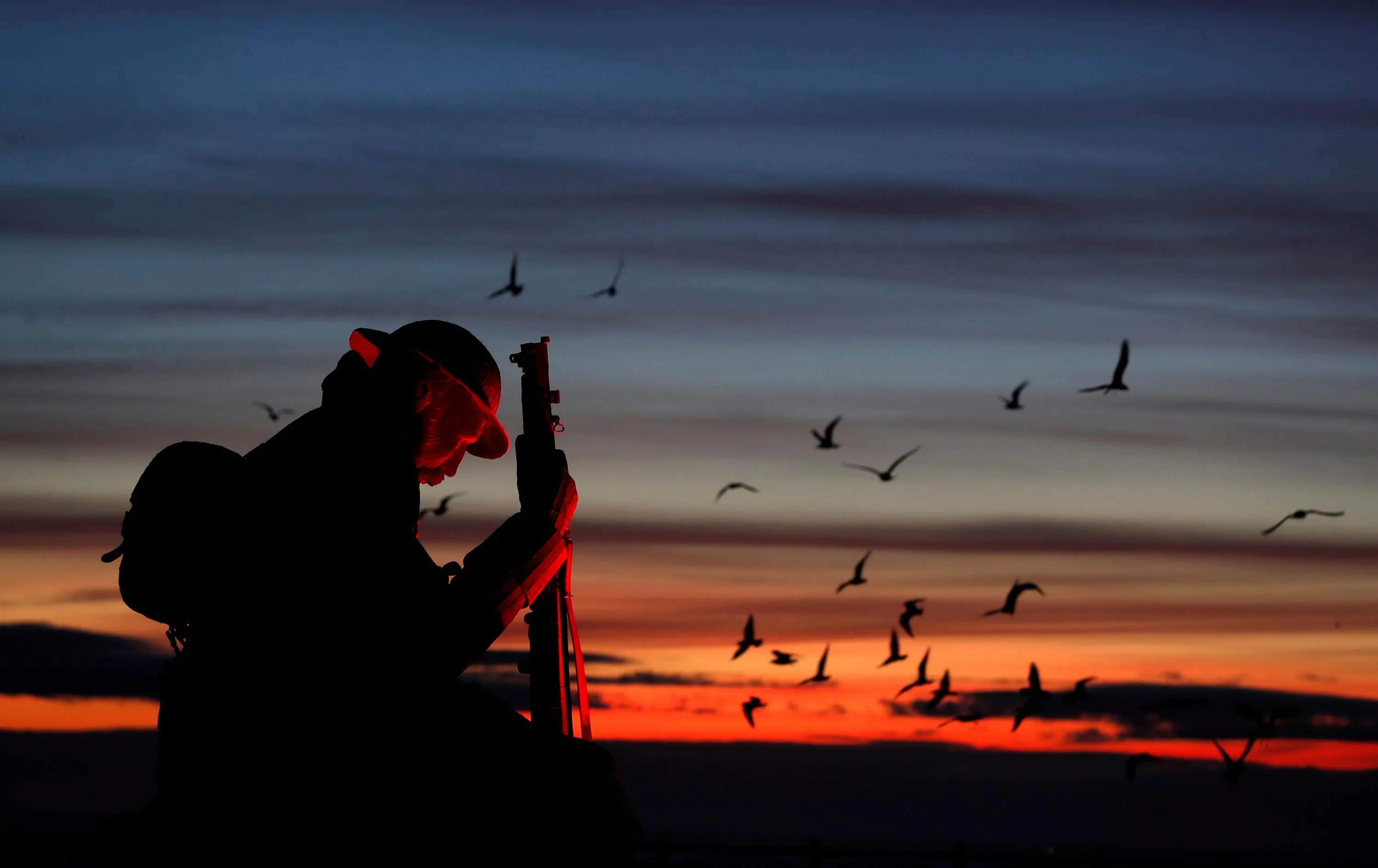 Seagulls fly around the statue entitled “Tommy”, a first World War soldier by artist Ray Lonsdale at dawn in Seaham, Britain on November 10, 2021. (Photo by Lee Smith/Reuters)