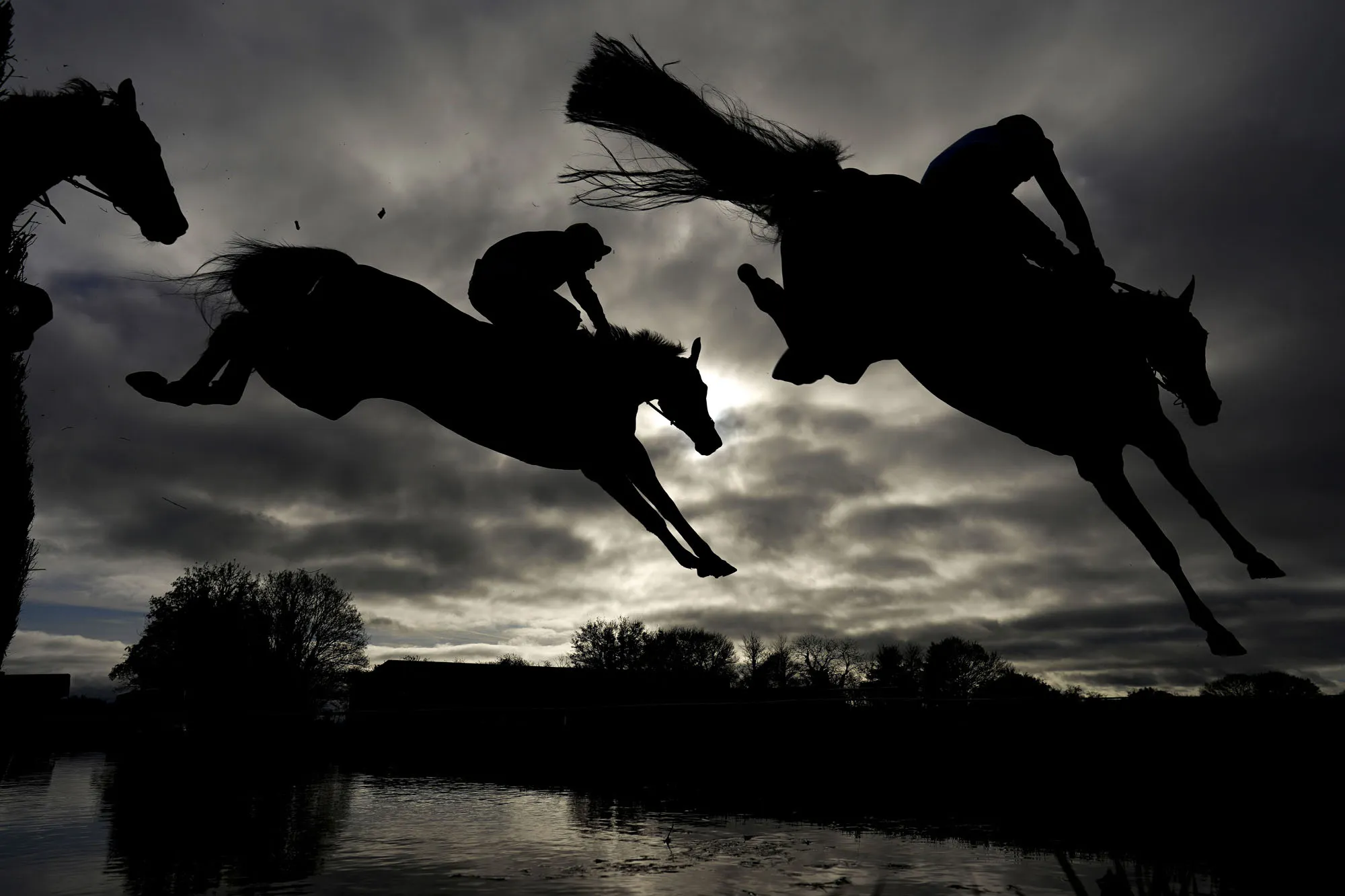 A general view as runners clear the water jump during The Wincanton Supporting Wincanton Town Youth FC Mares' Novices' Handicap Chase at Wincanton Racecourse on November 18, 2021 in Wincanton, England. (Photo by Alan Crowhurst/Getty Images)