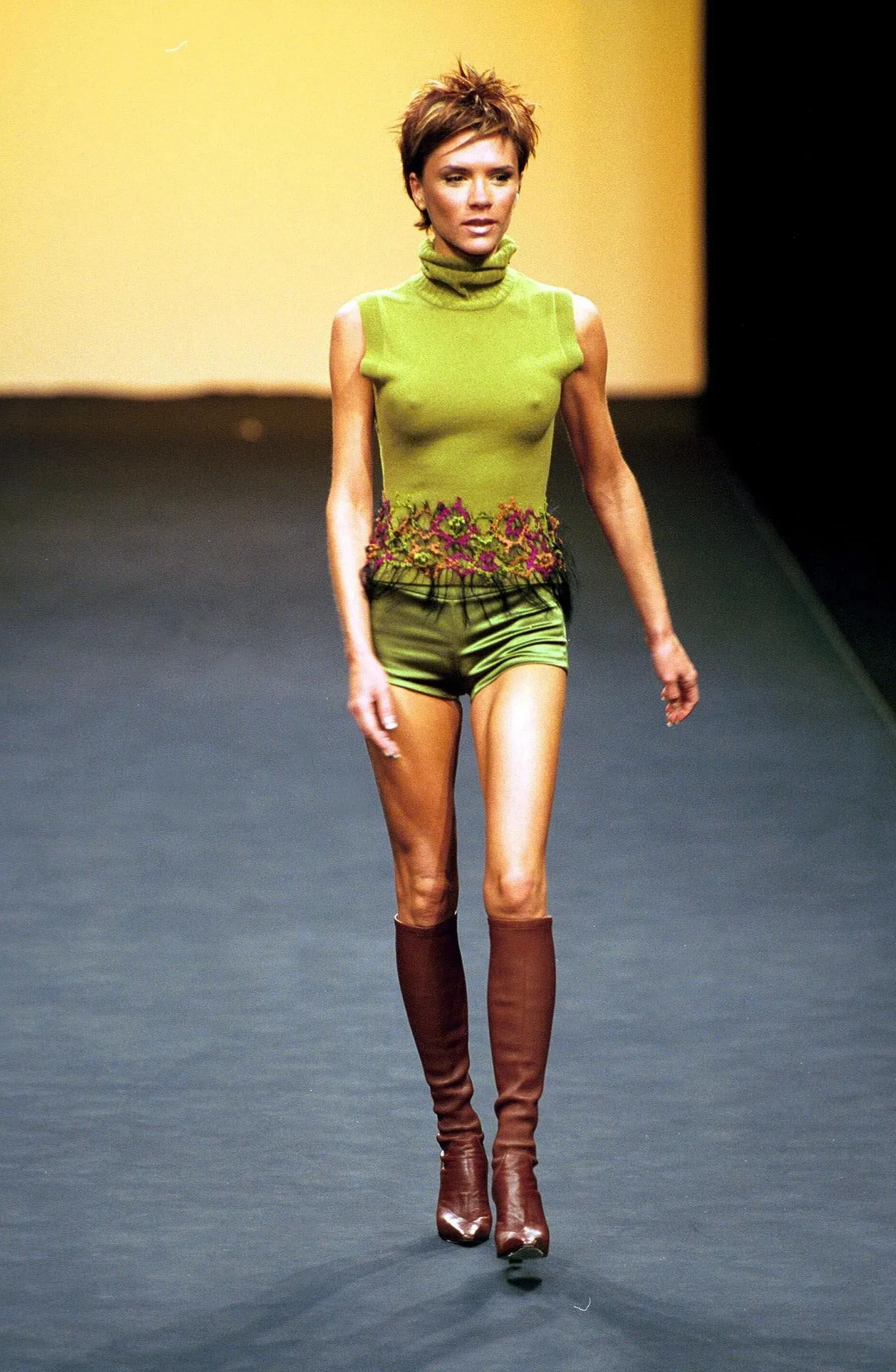 English singer Victoria Beckham models for Maria Grachvogel during London Fashion Week on February 16, 2000. (Photo by Steve Wood/Rex Features/Shutterstock)