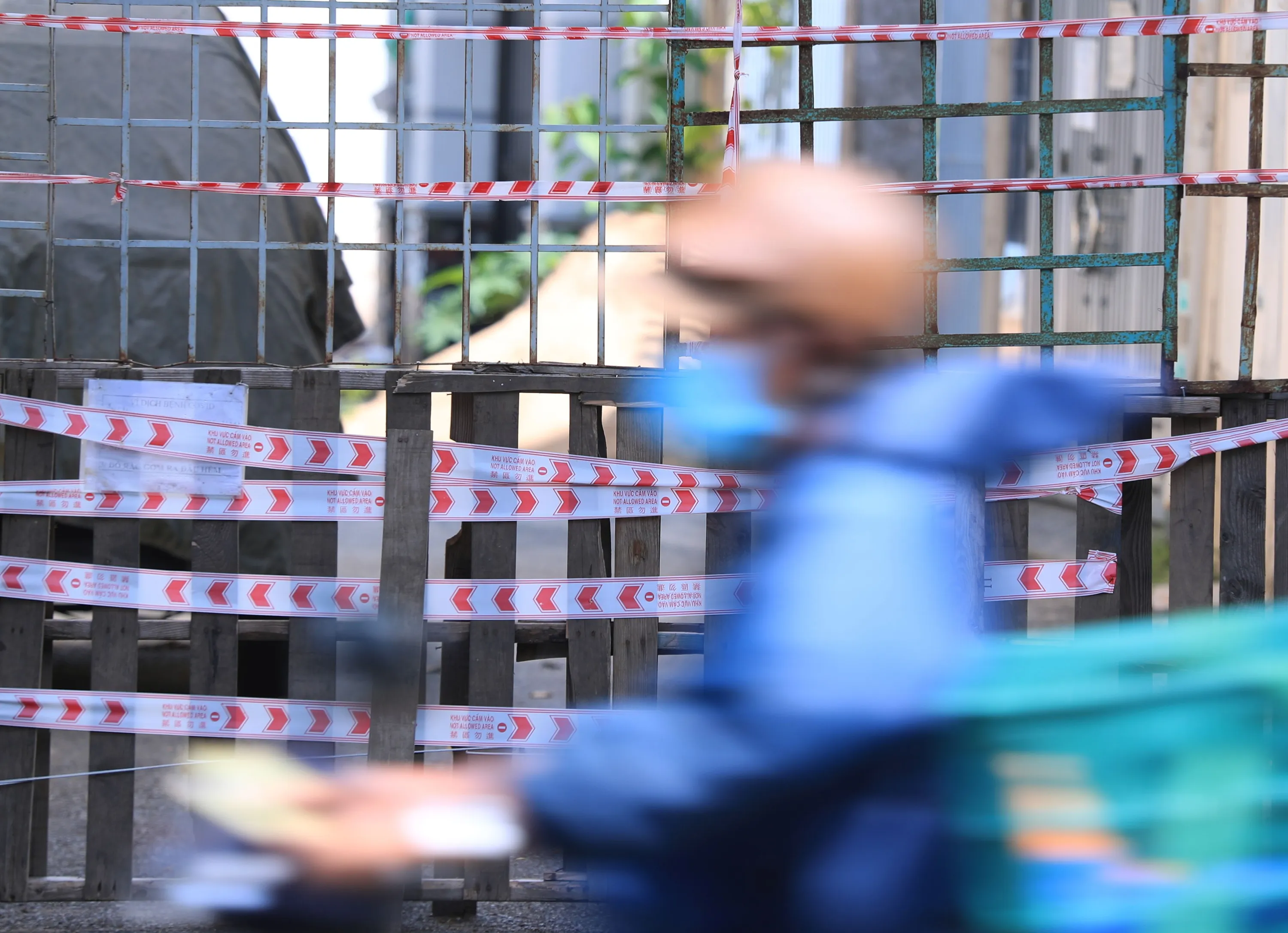 A man rides scooter past a barricaded alley in Vung Tau, Vietnam, Monday, September 20, 2021. The roadblocks and barricades make the streets of this southern Vietnamese city look like they did during the war that ended almost 50 years ago. But this time, the battle is being fought against the rampaging coronavirus. (Photo by Hau Dinh/AP Photo)