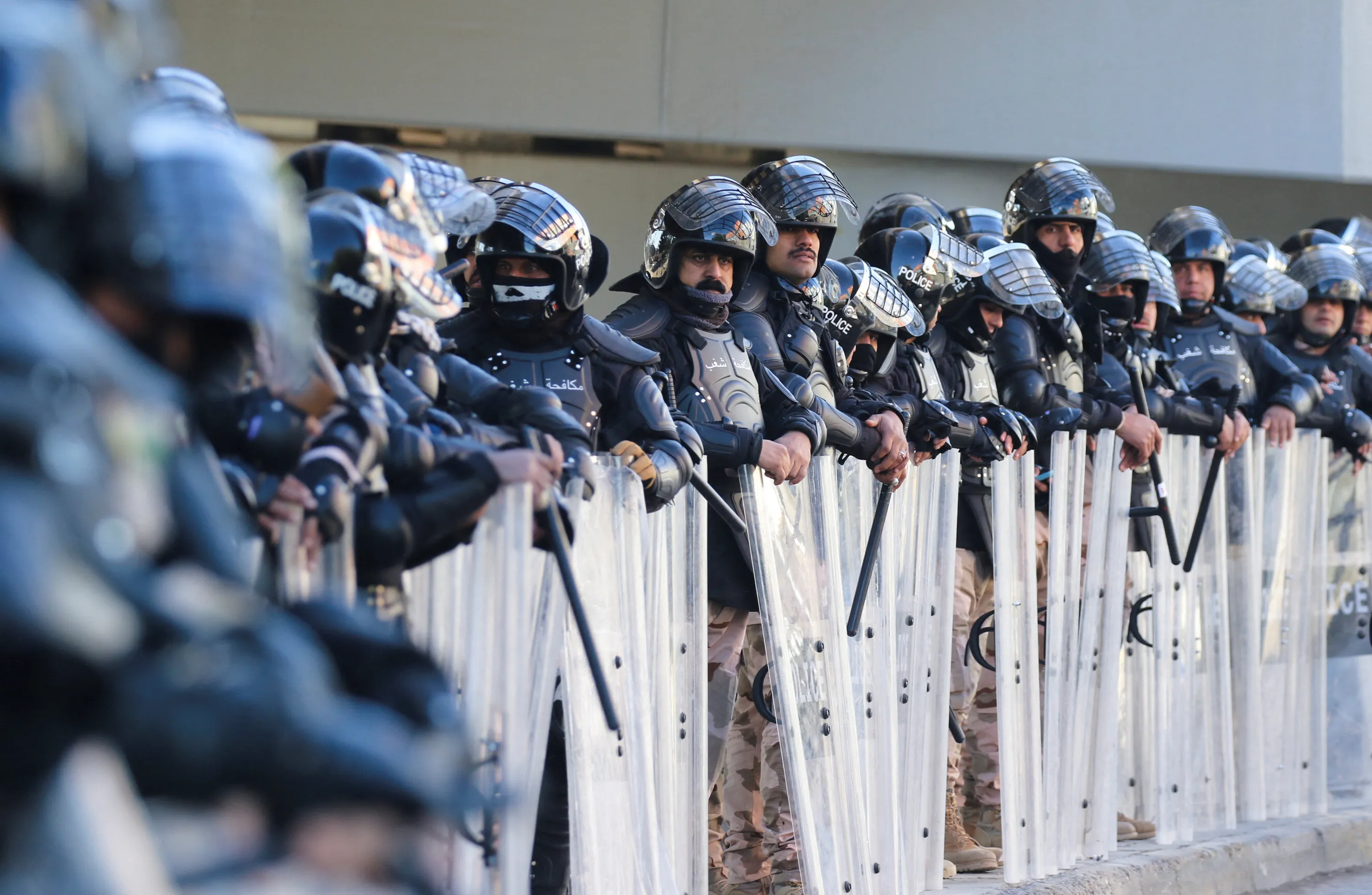 Iraqi riot police stand by as supporters of Iraqi Shiite parties disputing the vote results gather before the final verdict ratifying election results is issued by Iraq's Supreme Court, in Baghdad, Iraq, December 27, 2021. (Photo by Ahmed Saad/Reuters)