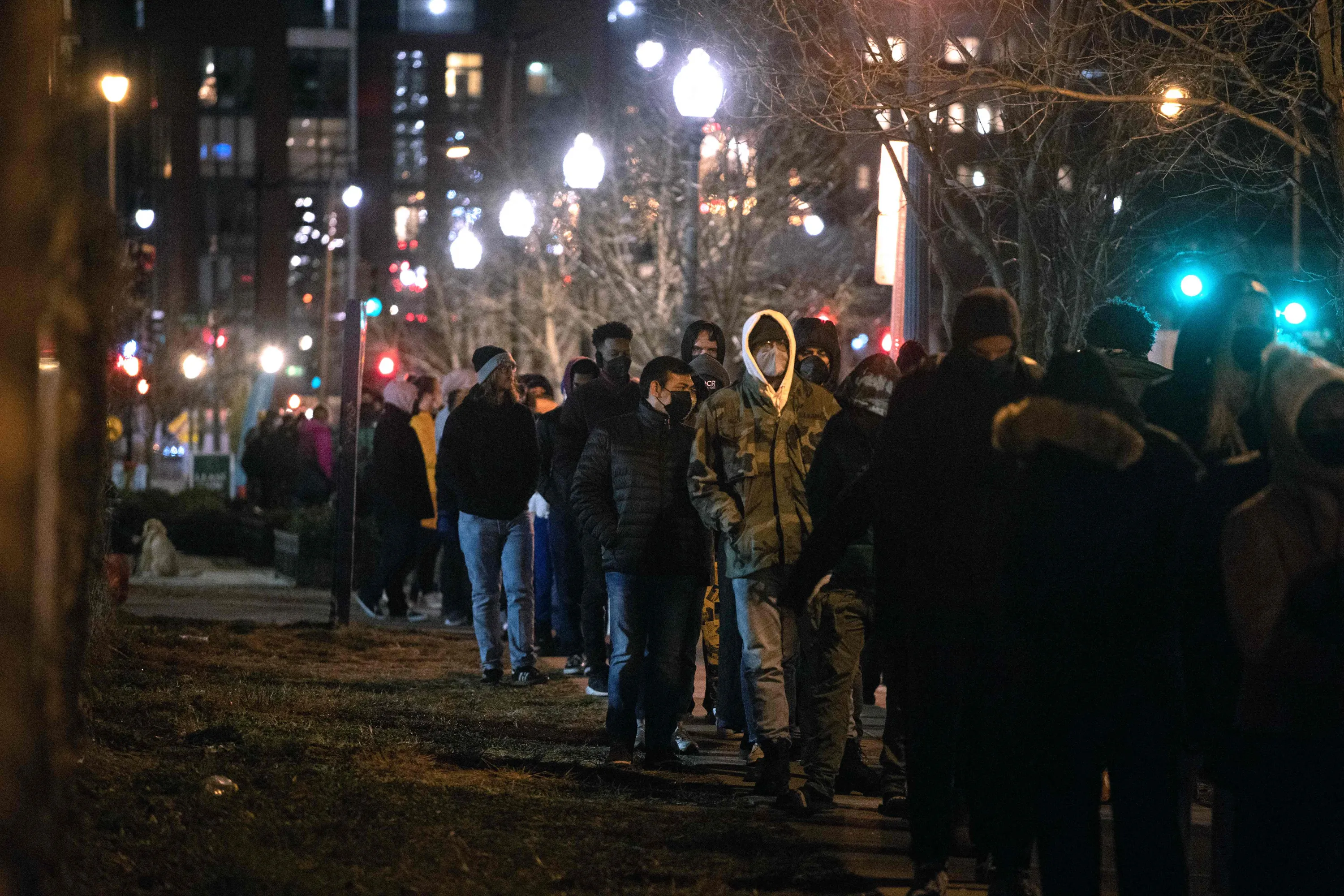 People line up to get tested for Covid-19 outside at a firehouse in Washington, DC on December 20, 2021. The fast-spreading Omicron variant is now the main coronavirus strain in the United States, accounting for 73.2 percent of new cases over the past week for which data is available, health authorities reported December 20, 2021. (Photo by Roberto Schmidt/AFP Photo)
