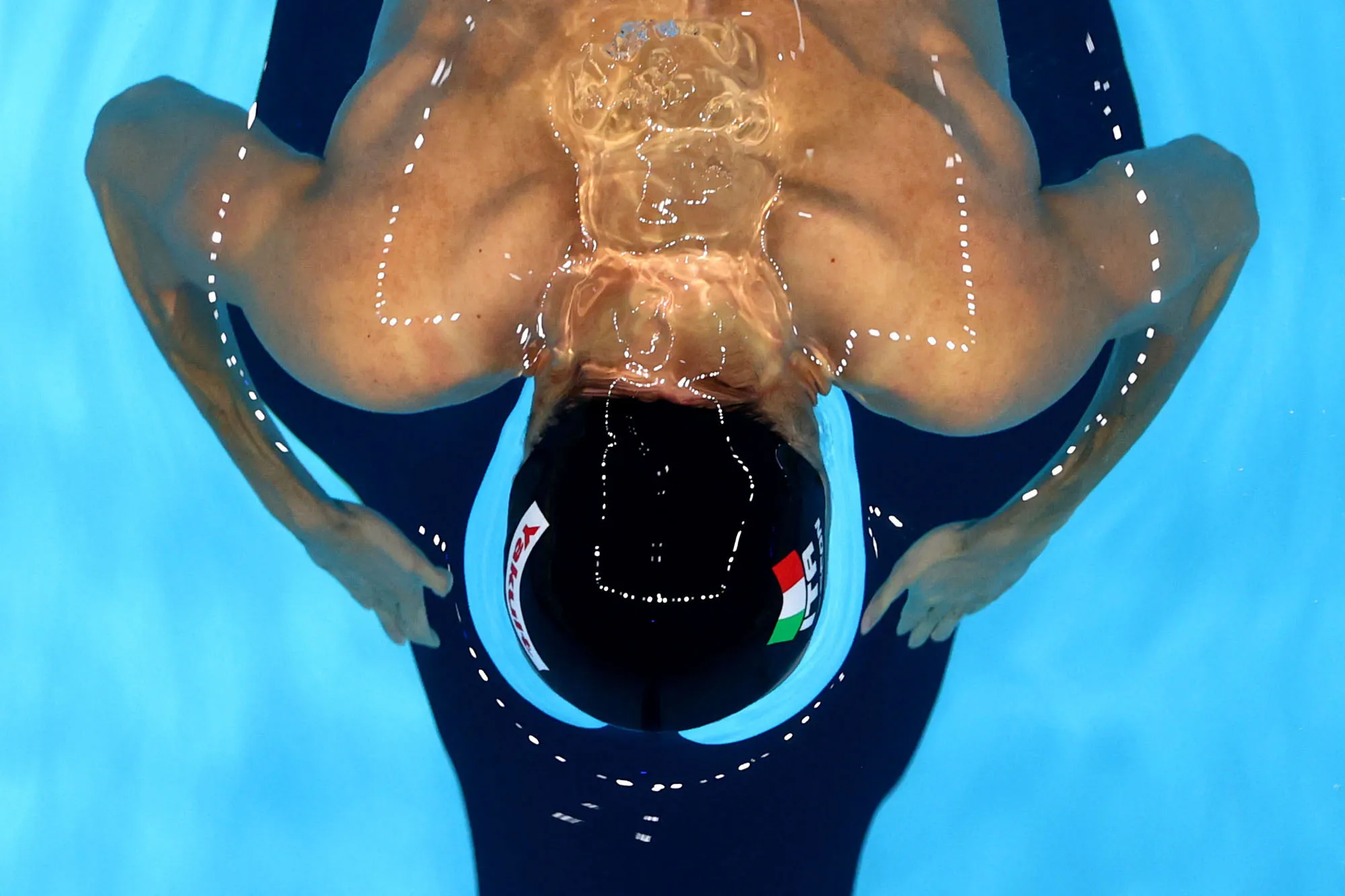 Thomas Ceccon of Italy competes in the Men's 50m Butterfly heat during day four of the FINA World Swimming Championships (25m) Abu Dhabi at Etihad Arena on December 19, 2021 in Abu Dhabi. (Photo by Clive Rose/Getty Images)
