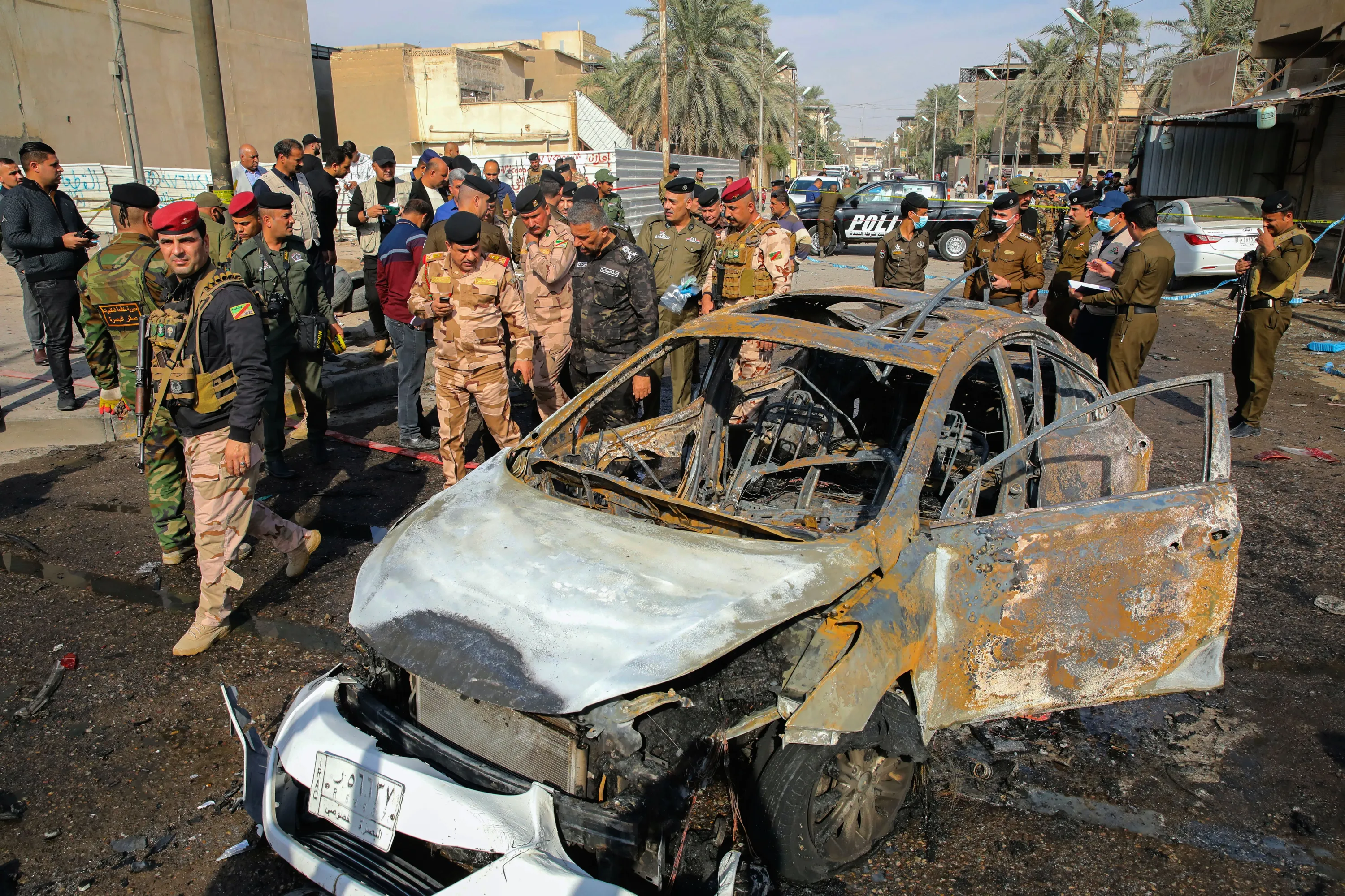 Iraqi security forces inspect the site of an explosion in Basra, Iraq, Tuesday, December 7, 2021. The explosion rocked the center of Iraq’s southern city of Basra, killing at least four people and wounding several others. Local news reports initially reported a car bomb, but the governor of Basra told reporters on the scene that a motorcycle had exploded. (Photo by Nabil al-Jurani/AP Photo)