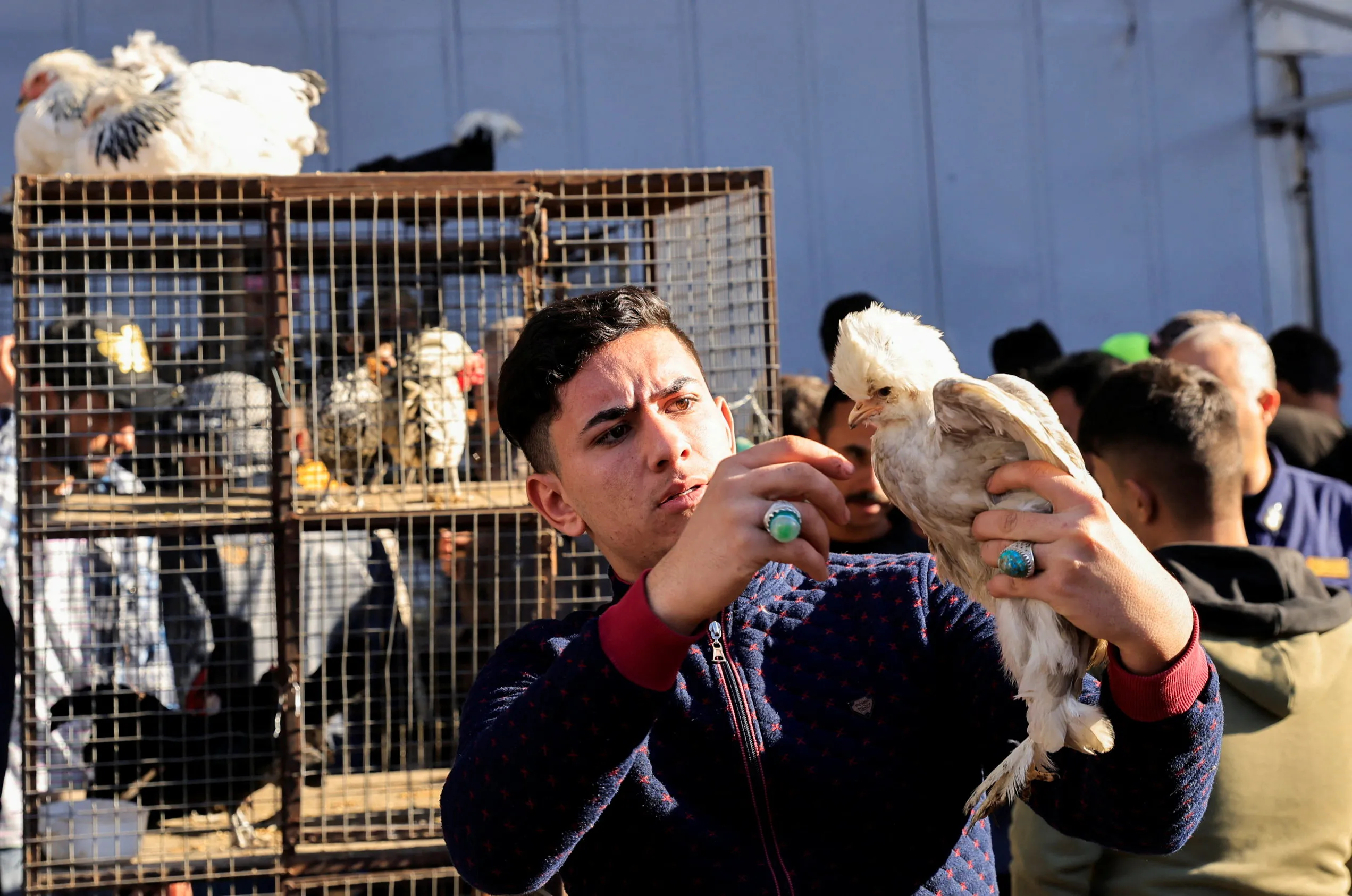 A man holds a bird at al-Ghazal animal market in Baghdad, Iraq on December 10, 2021. (Photo by Thaier Al-Sudani/Reuters)