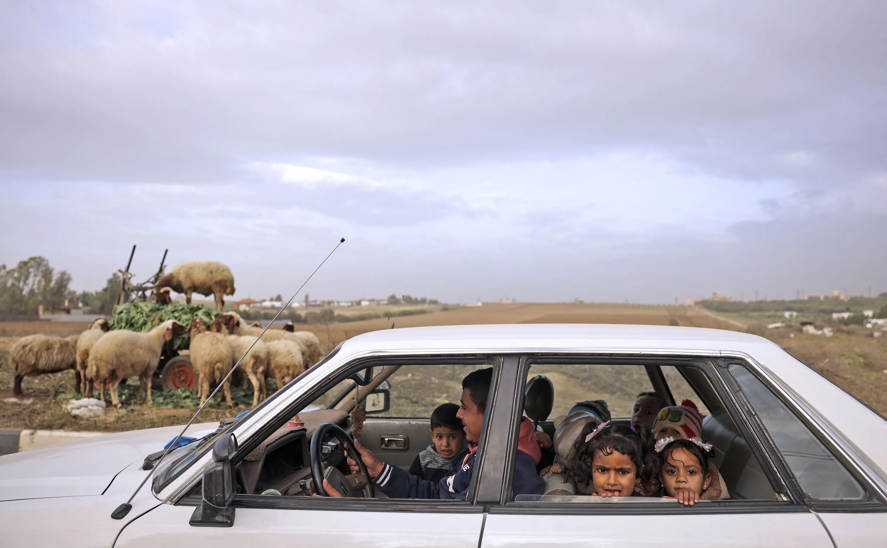 Palestinian children look on as they are driven home from school in Gaza City on December 9, 2021. (Photo by Mohammed Abed/AFP Photo)