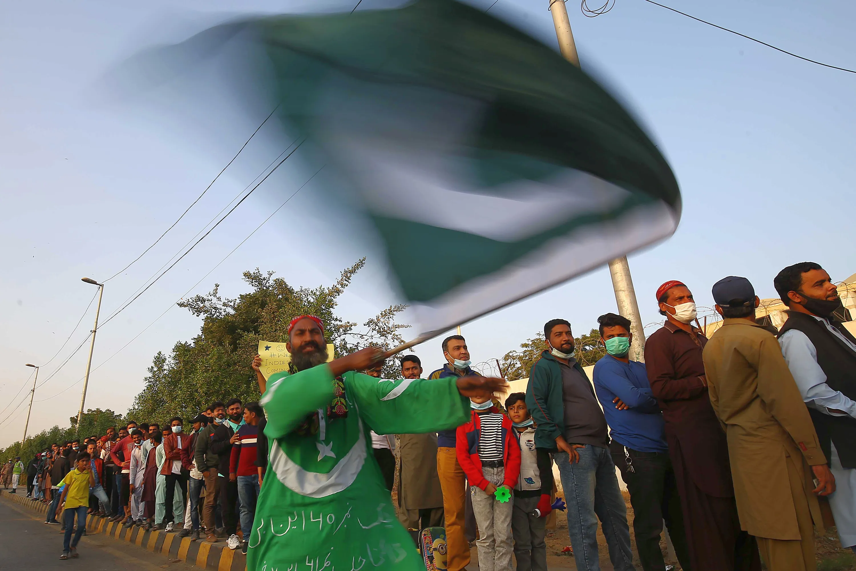 Spectators queue outside the National Stadium before the first of three T20 cricket matches between Pakistan and the West Indies, in Karachi, Pakistan, 13 December 2021. The West Indian cricket team plays three T20s and an equal number of ODIs, all at the National Stadium in Karachi. (Photo by Shahzaib Akber/EPA/EFE)