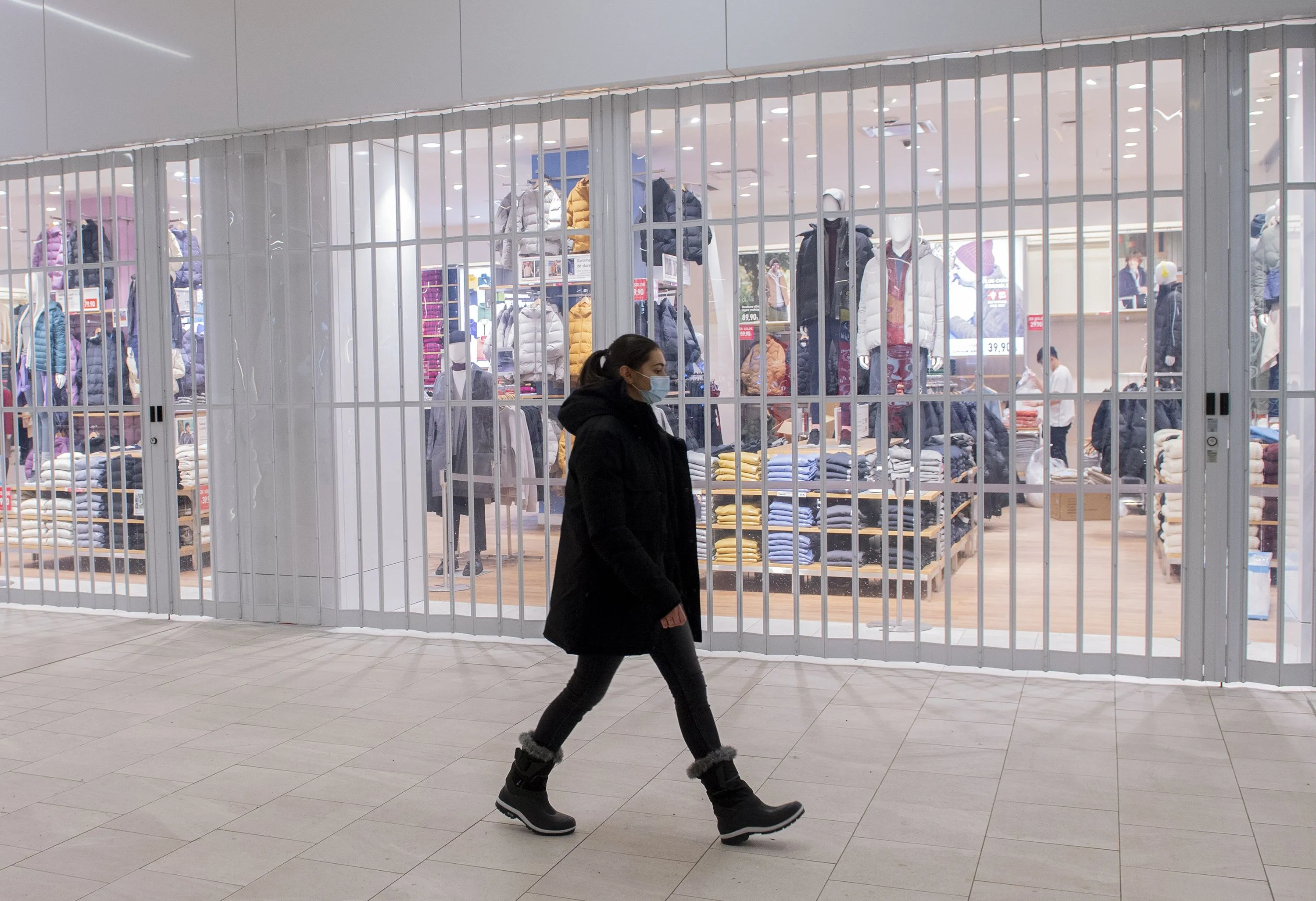 A woman walks by a closed store in a shopping mall in Montreal, Sunday, January 2, 2022, as the COVID-19 pandemic continues in Canada. Some measures put in place by the Quebec government, including the closure of stores, go into effect today to help curb the spread of COVID-19 in the province. (Photo by Graham Hughes/The Canadian Press via AP Photo)