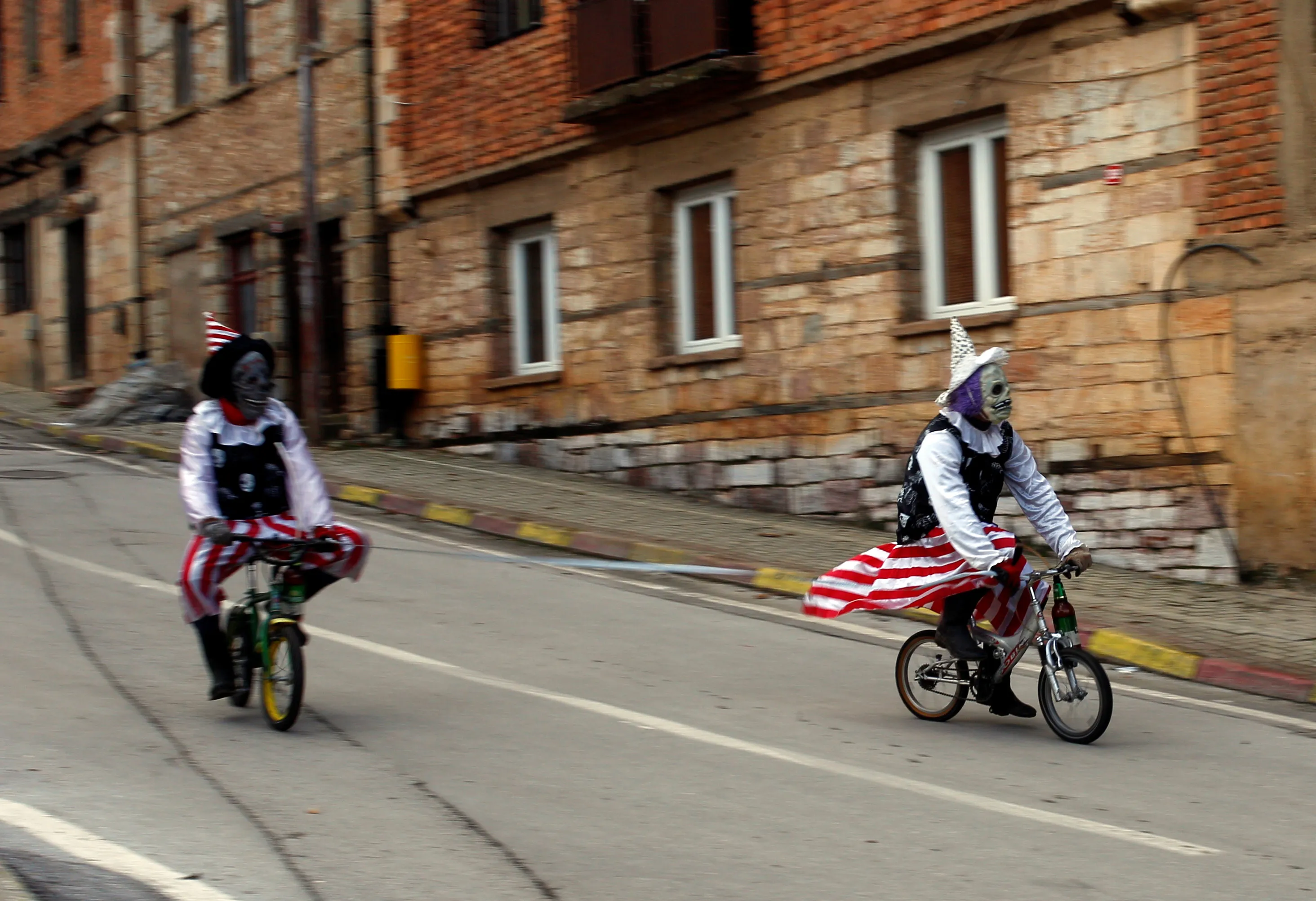 Revellers ride down during a carnival to mark the annual Orthodox St. Vasilij Day, the beginning of the Orthodox New Year, in the village of Vevcani, North Macedonia on January 13, 2021. (Photo by Ognen Teofilovski/Reuters)