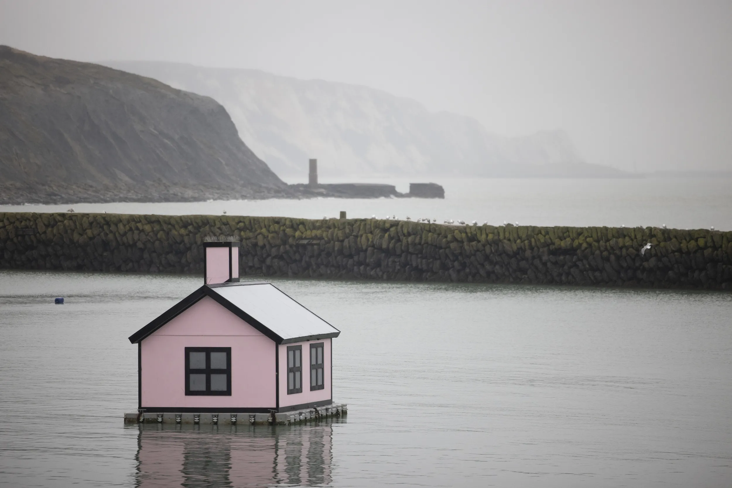 Artwork by Richard Woods in the harbor on January 13, 2021 in Folkestone, United Kingdom. On Monday January 4th England entered its third lockdown due to the Coronavirus pandemic. Schools and colleges moved to online learning, mixing with people outside households and bubbles was curtailed and non-essential food shops closed. (Photo by Dan Kitwood/Getty Images)