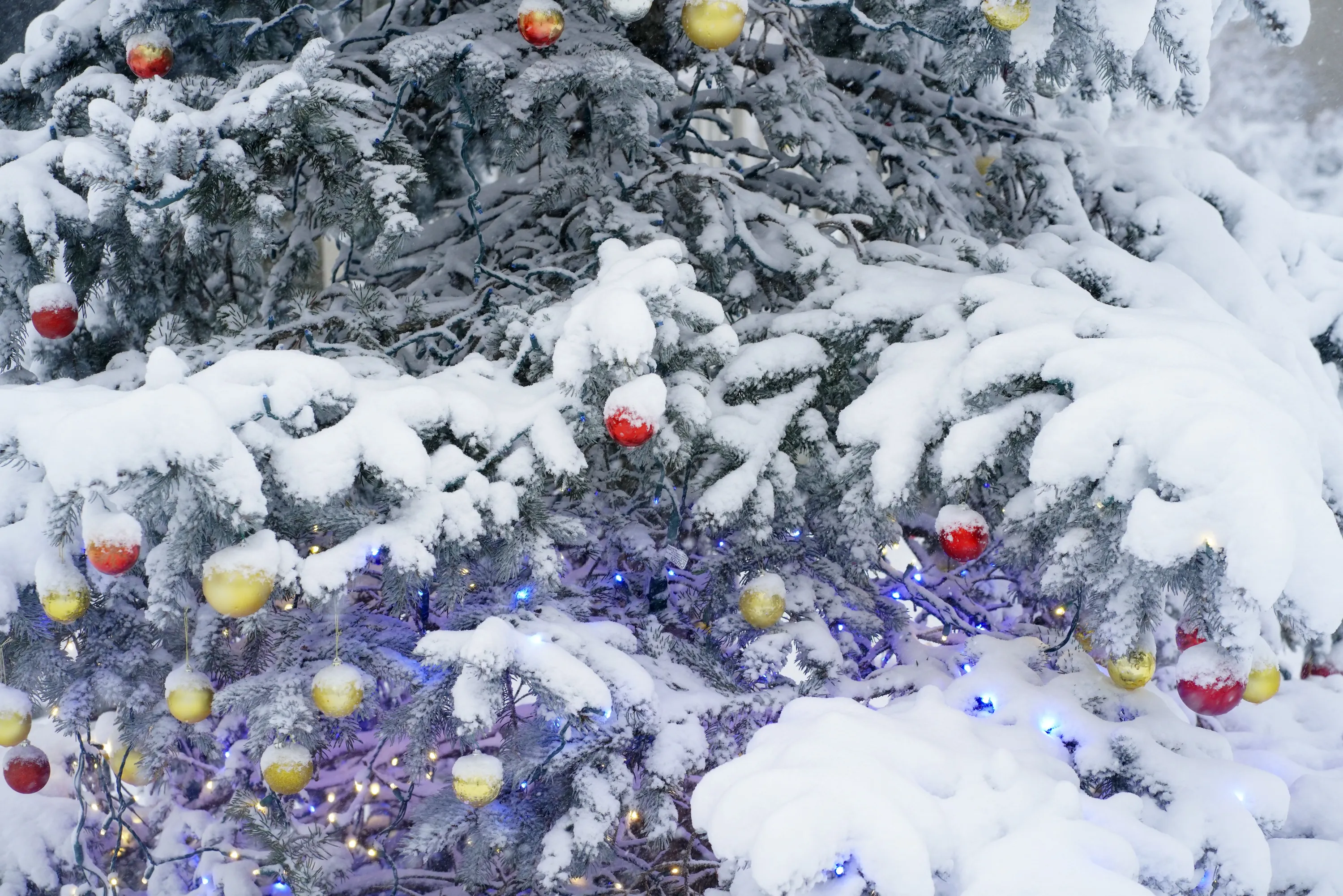 Snow covers a tree decorated for the holiday season on January 3, 2022 in Takoma Park, MD. Four to eight inches are expected in the area. (Photo by Bonnie Jo Mount/The Washington Post)