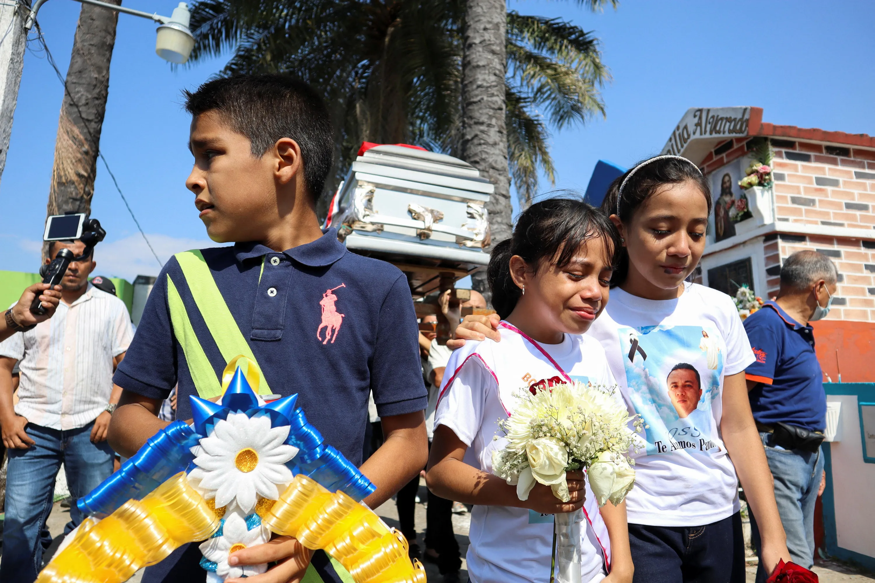Relatives and the daughters of Leonel Gomez Zepeda, who died in a truck crash along other Guatemalan migrants in southern Mexico, participate in a funeral procession toward the cemetery in Malacatan, Guatemala on December 20, 2021. (Photo by Jose Torres/Reuters)