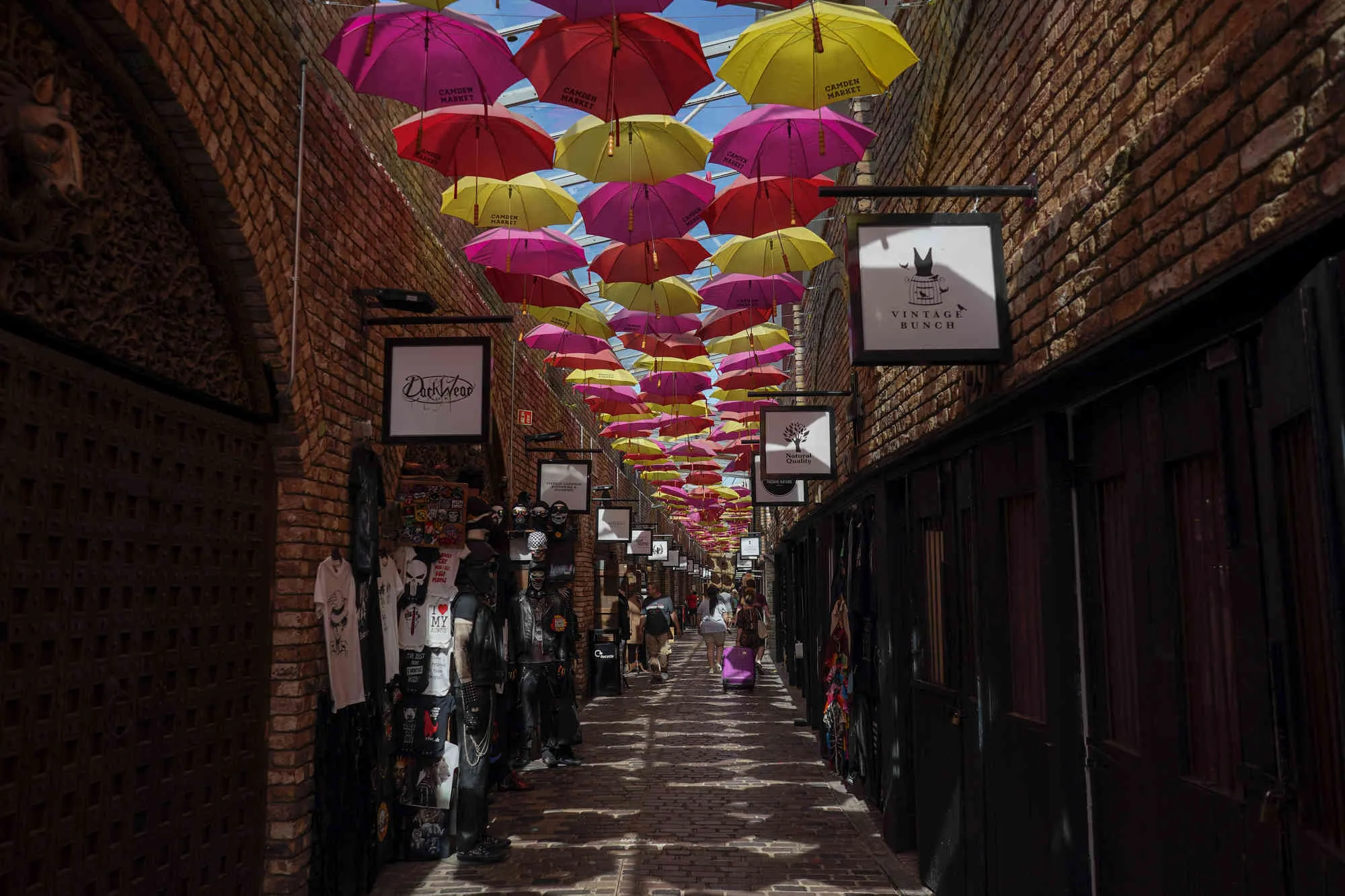 A general view of the Camden Stables market in London, Thursday, July 22, 2021. (Photo by Alberto Pezzali/AP Photo)