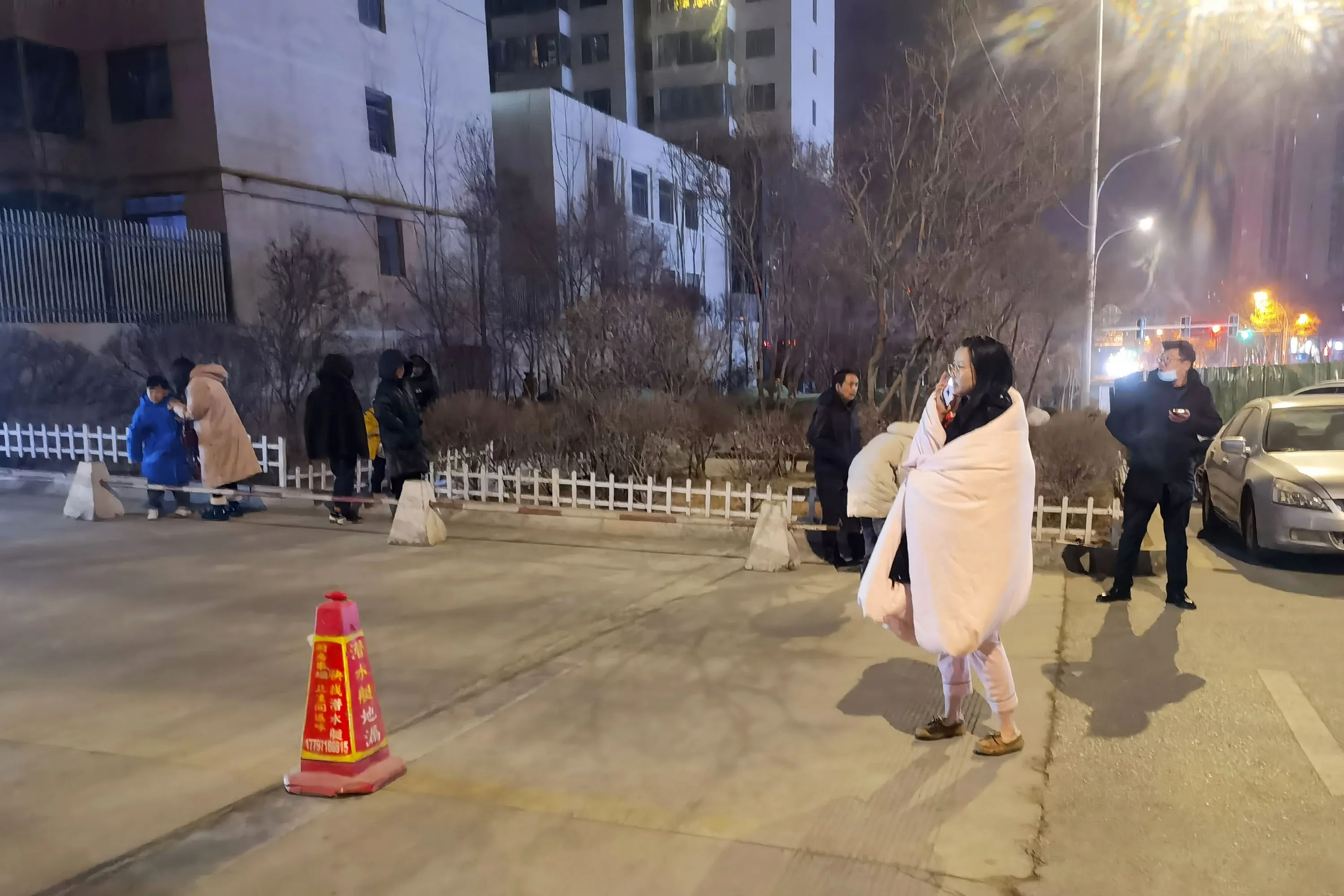 In this photo released by China's Xinhua News Agency, people stand on the street after an earthquake in Xining in northwestern China's Qinghai Province, early Saturday, January 8, 2022. An overnight earthquake shook a sparsely populated area in western China early Saturday, authorities said. There were no immediate reports of injuries. (Photo by Wang Bo/Xinhua via AP Photo)