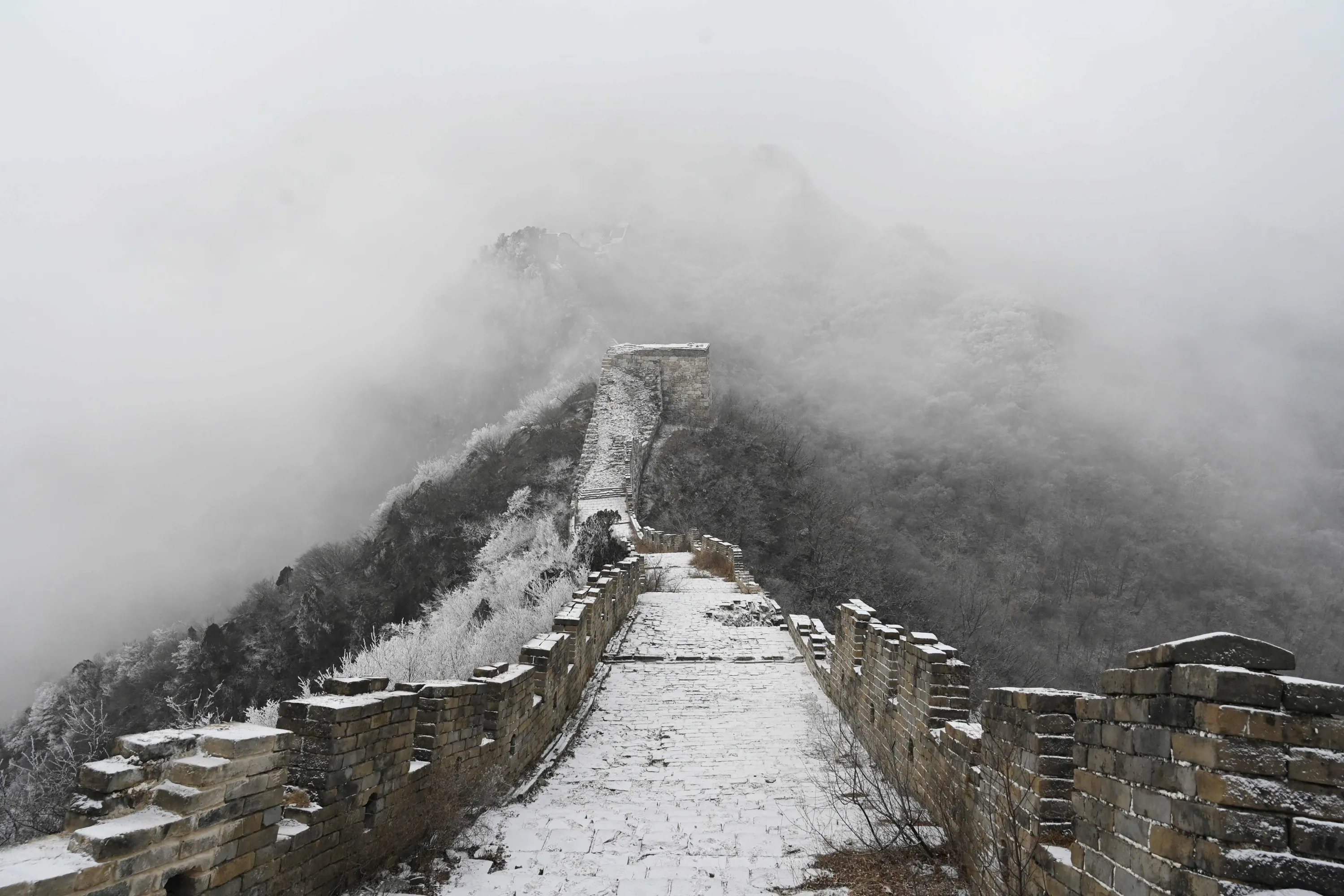 The Great Wall of China is seen after a light snowfall at Jiankou, north of Beijing on January 9, 2022. (Photo by Greg Baker/AFP Photo)
