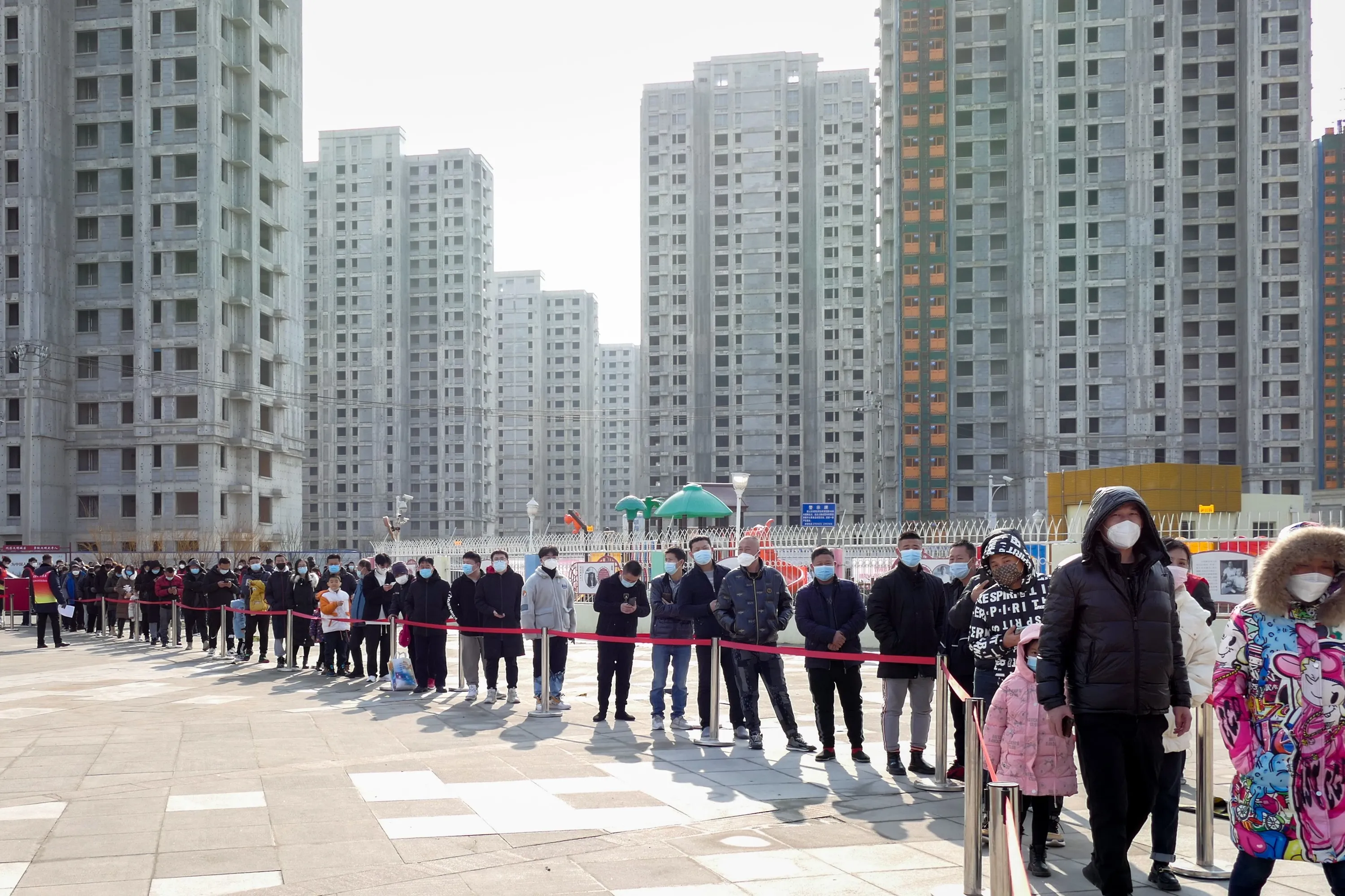 Residents line up to undergo a Covid-19 test in Tianjin Municipality, China, 09 January 2022. The city of Tianjin reported 20 new Covid-19 cases on 09 January, mostly students and their family members. (Photo by GT/EPA/EFE/China Stringer Network)