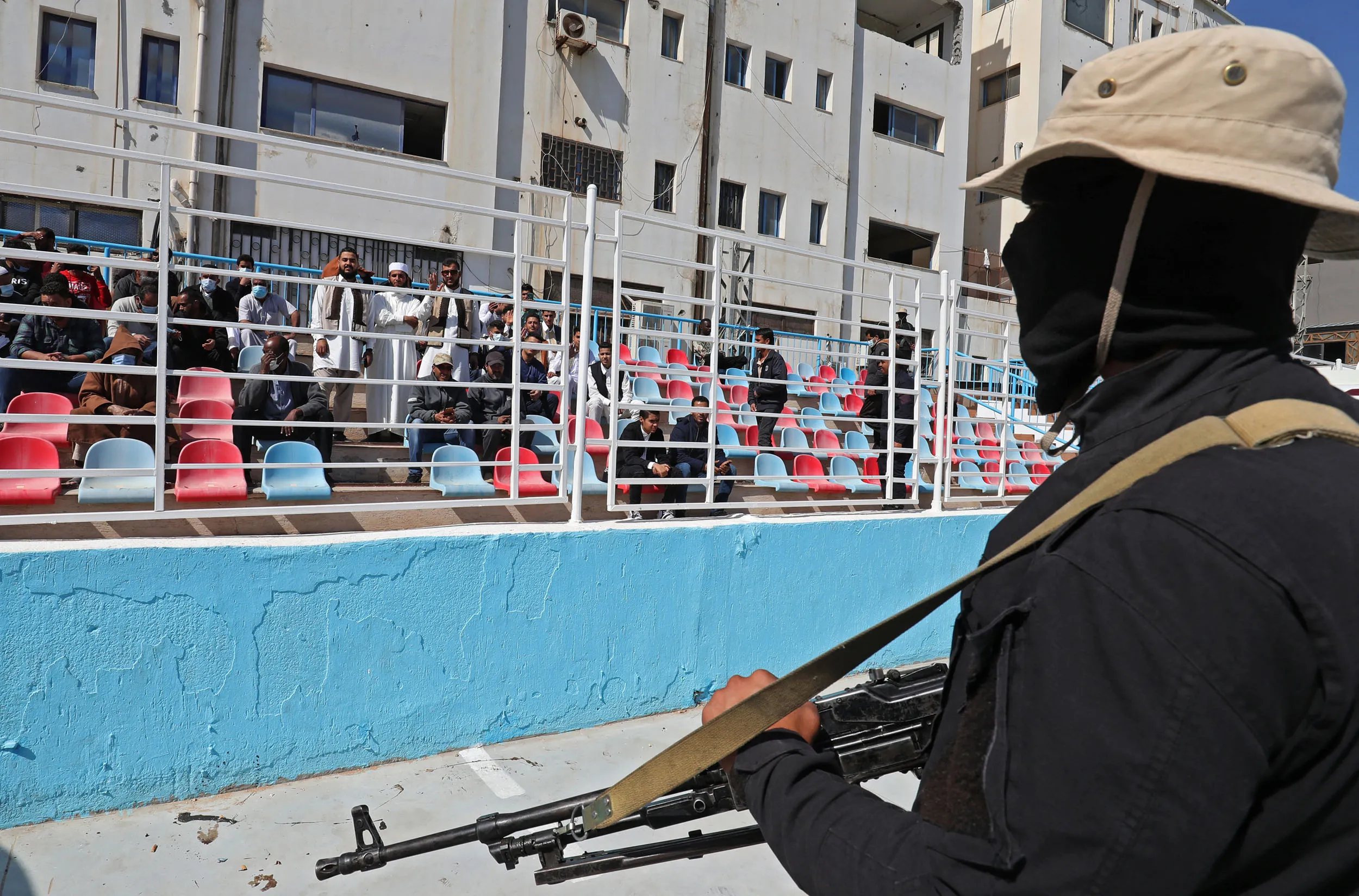 The relatives of prisoners of war, loyal to the forces of Libya's eastern military strongman Khalifa Haftar, wait for their release by the new Libyan unity government on March 31, 2021 in the port city of Zawiya, 50 kilometres (30 miles) west of the Libyan capital Tripoli, following the latest peace deal between the North African country's former rival governments. The two sides have completed more than one prisoner swap this year as Libya's eastern administration officially handed over power to a new executive that is meant to unify the war-torn country and steer it towards elections late this year. The Government of National Unity (GNU), selected through a UN-supported process, is the latest internationally backed bid to end a decade of chaos in the North African nation and unite rival administrations. (Photo by Mahmud Turkia/AFP Photo)