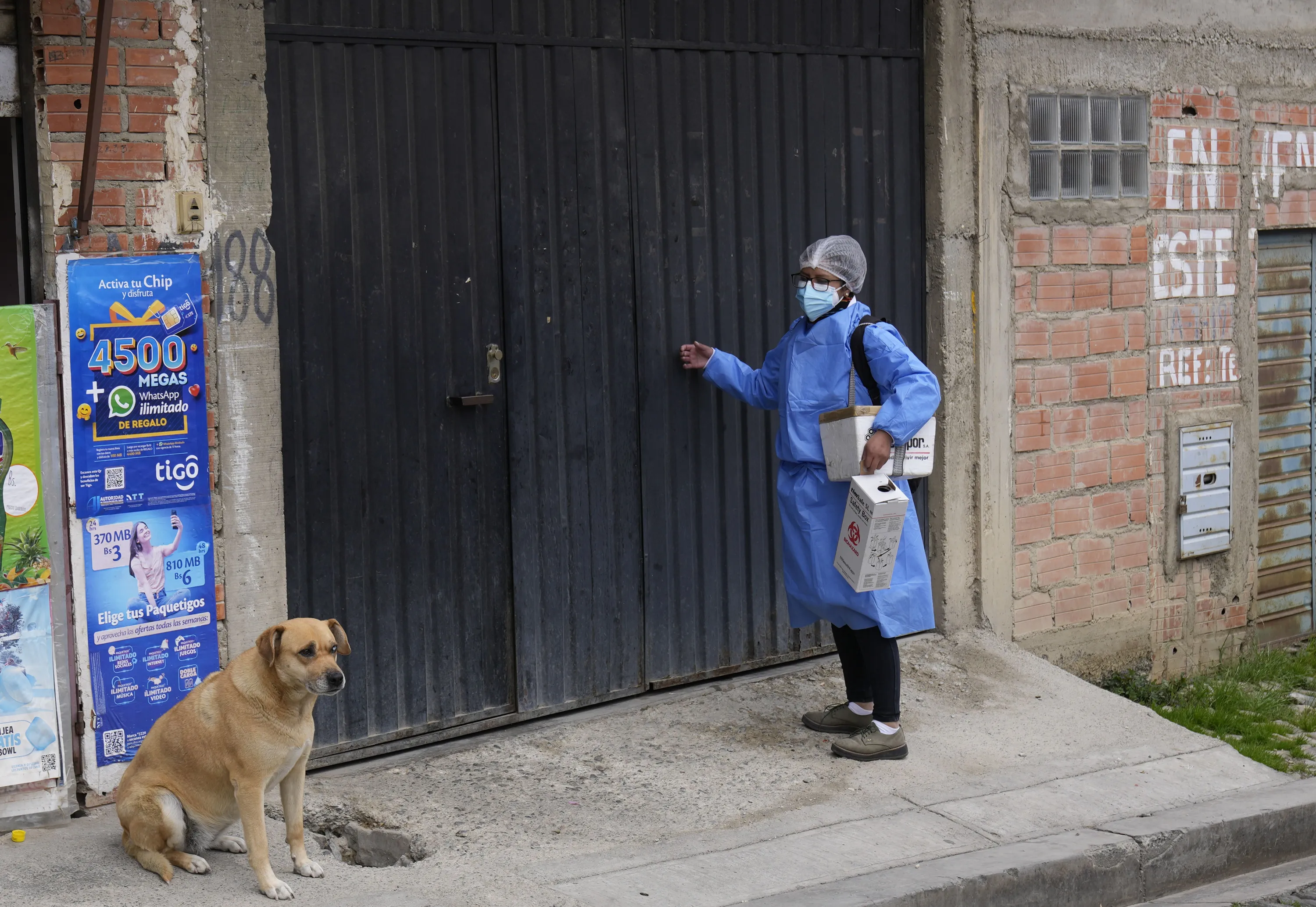 A healthcare worker knocks on the door of a house during a door-to-door COVID-19 vaccination campaign, in La Paz, Bolivia, Sunday, January 16, 2022. (Photo by Juan Karita/AP Photo)