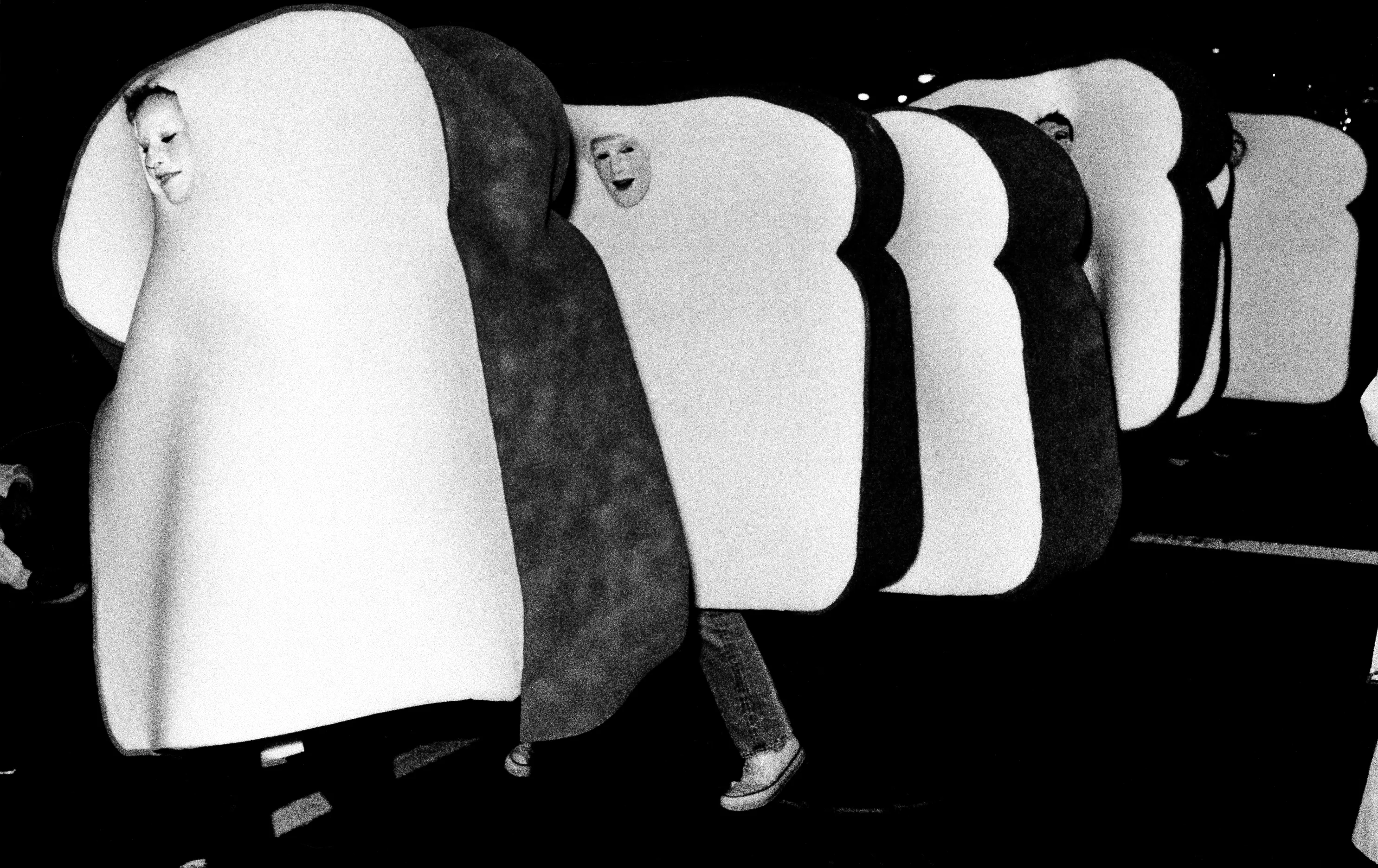 Participants in the 10th annual Halloween Parade in New York, October 31, 1983, don't have time to loaf as they move with the flow of marchers through Greenwich village. The event attracted some 250,000 people who watch marched in the parade. (Photo by Ray Stubblebine/AP Photo)