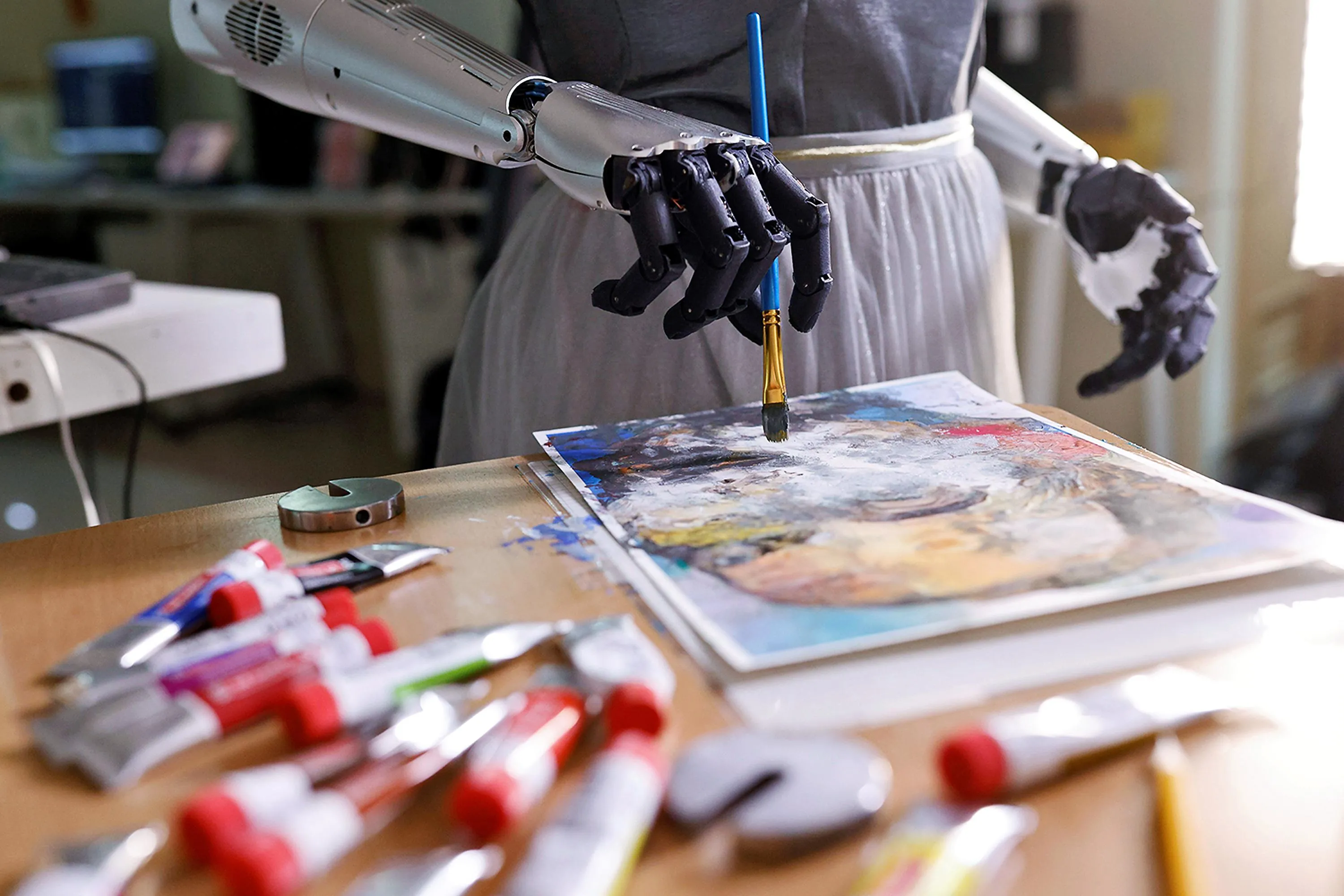 Humanoid robot Sophia, developed by Hanson Robotics, draws on a piece of paper before auctioning her own non-fungible token (NFT) artwork, in Hong Kong, China on March 16, 2021. (Photo by Tyrone Siu/Reuters)