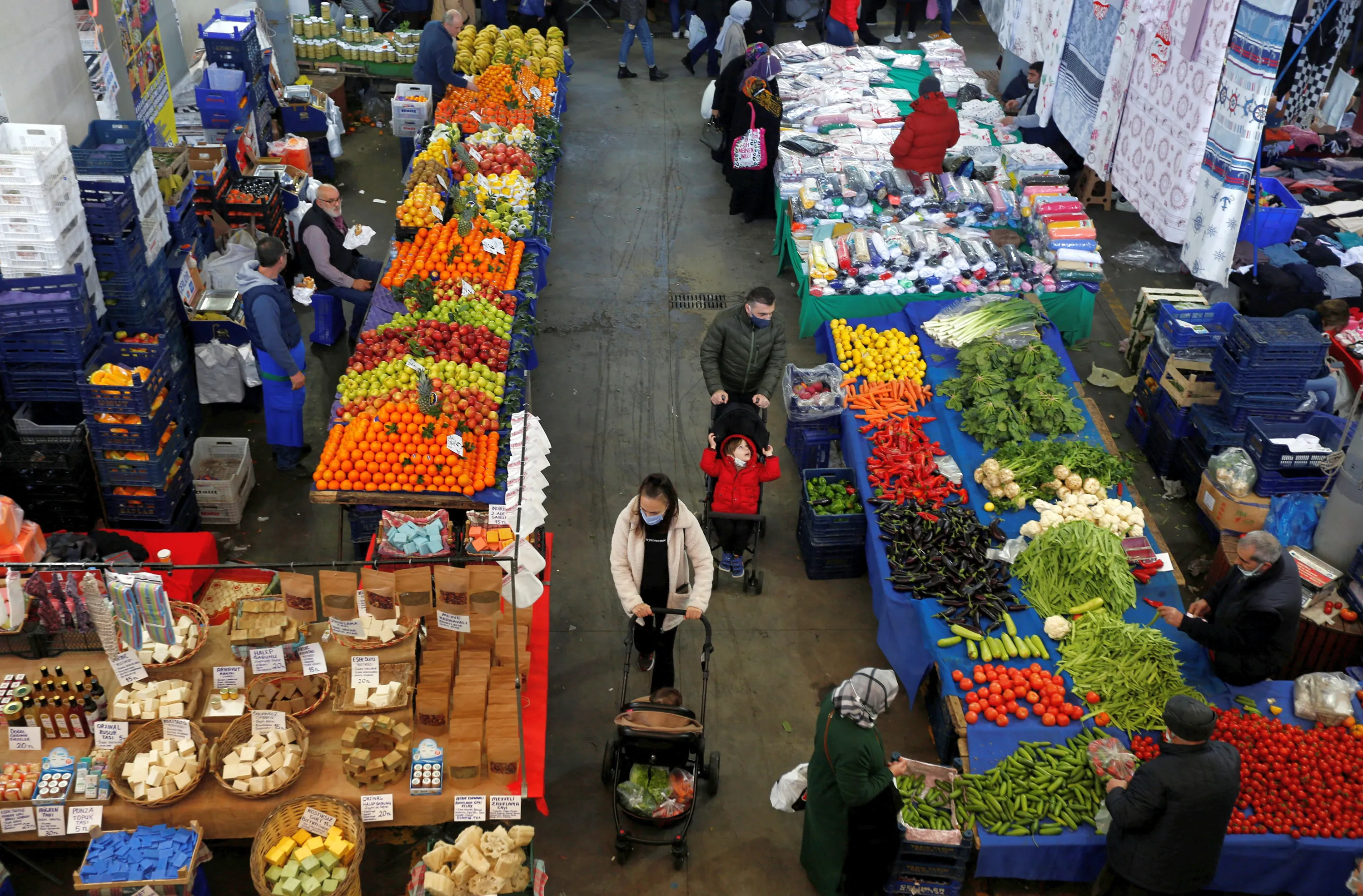 People shop at an open market in Istanbul, Turkey, January 4, 2022. (Photo by Dilara Senkaya/Reuters)