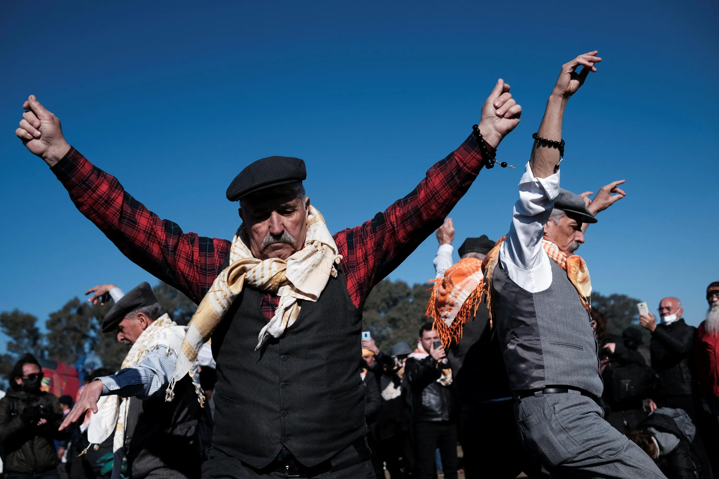 People dance at the Pamucak Arena during the annual 40th Efes Selcuk Camel Wrestling Festival in the Aegean town of Selcuk, near Izmir, Turkey, January 16, 2022. (Photo by Murad Sezer/Reuters)