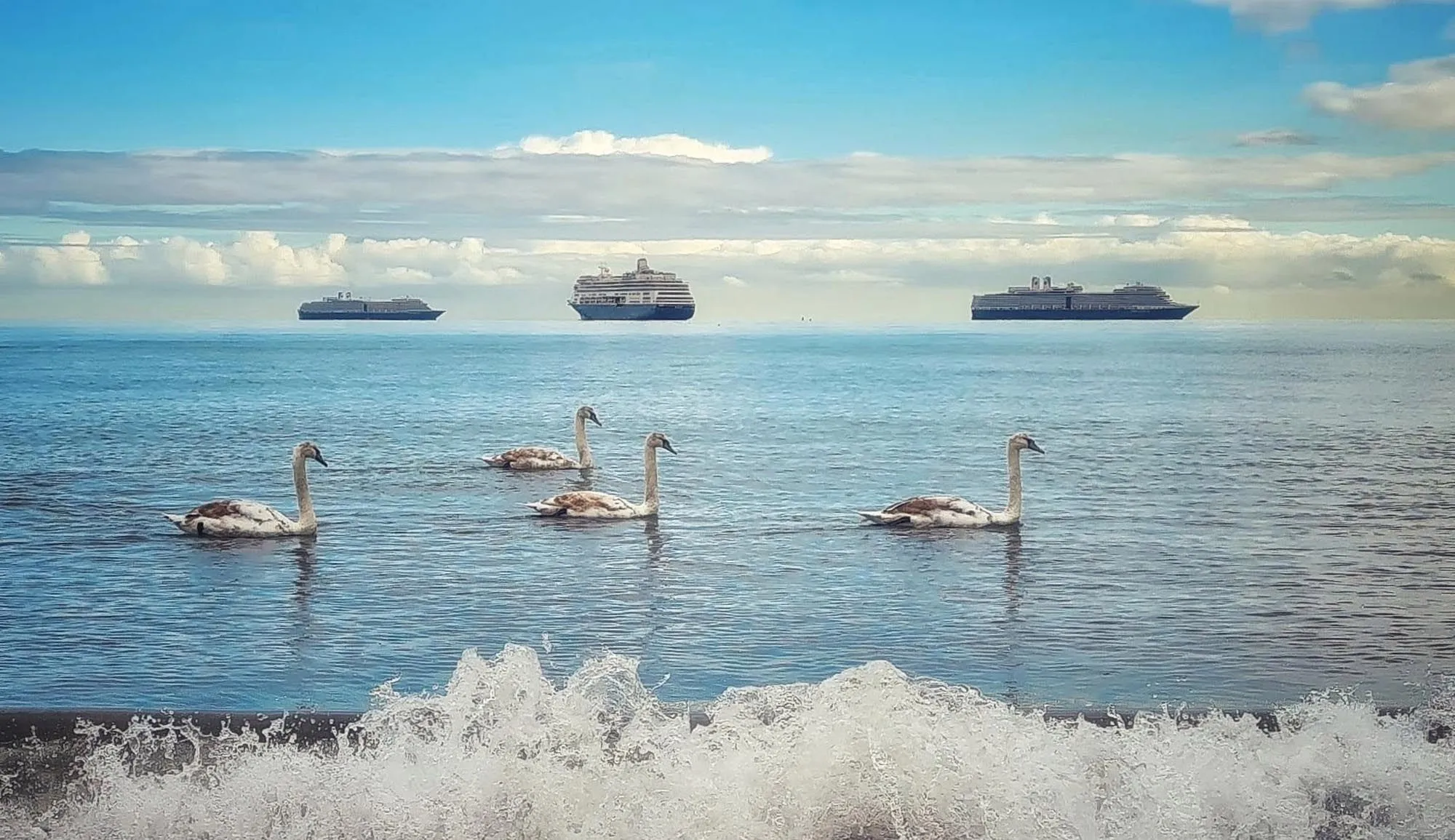 Cruise ships were seen “hovering” above the waters near Paignton, Devon, United Kingdom on March 2021. The phenomenon - known as Fata Morgana – is created when the sun heats up the atmosphere above either the land or the sea. A layer of warmer air sits on top of a layer of cold air, causing the light from the ship to bend and making colours blend together. (Photo by Apex News)