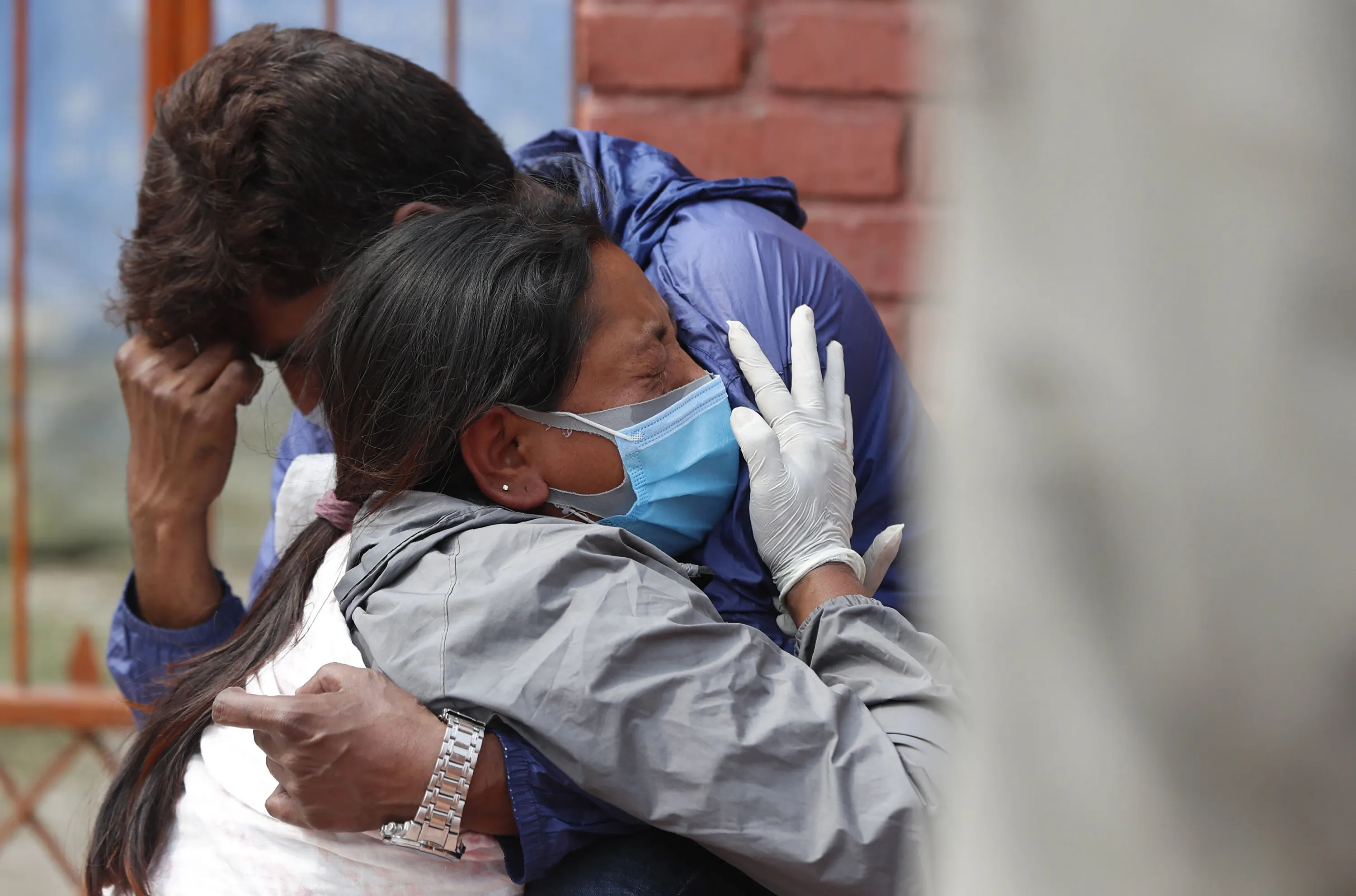 Relatives of a person who died of COVID-19 mourn at a crematorium in Kathmandu, Nepal, Friday, April 30, 2021. An infection surge in Nepal has prompted the government to impose new lockdowns in major cities and towns, restricting the movement of people and vehicles and shuttering markets, offices and schools. (Photo by Niranjan Shrestha/AP Photo)