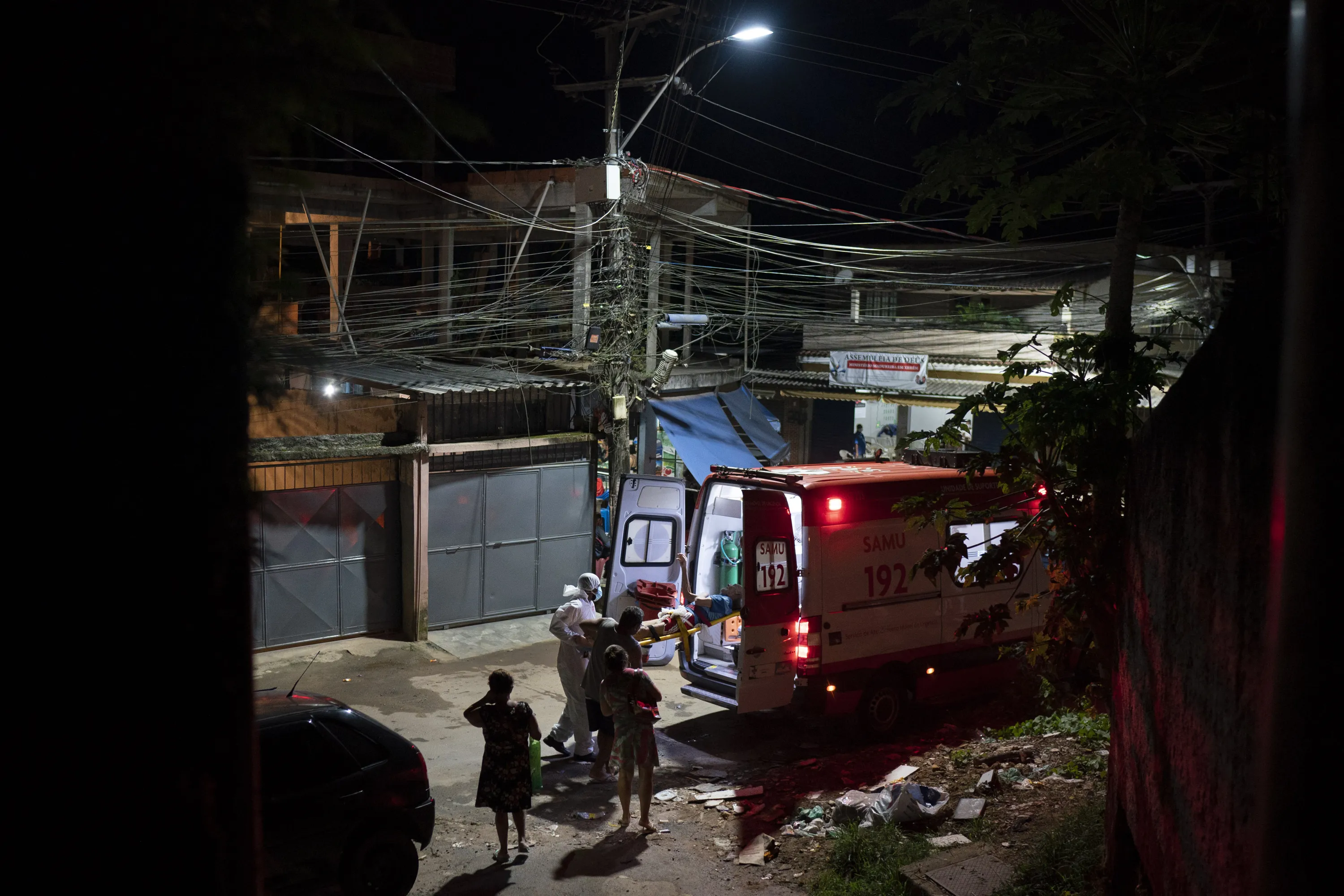 In this April 7, 2021, file photo, Mobile Emergency Care Service (SAMU) workers carry an elderly COVID-19 patient to an ambulance in Duque de Caxias, Rio de Janeiro state, Brazil. Nations around the world set new records Thursday, April 8, for COVID-19 deaths and new coronavirus infections, and the disease surged even in some countries that have kept the virus in check. Brazil became just the second country, after the U.S., to report a 24-hour tally of COVID-19 deaths exceeding 4,000. (Photo by Felipe Dana/AP Photo/File)