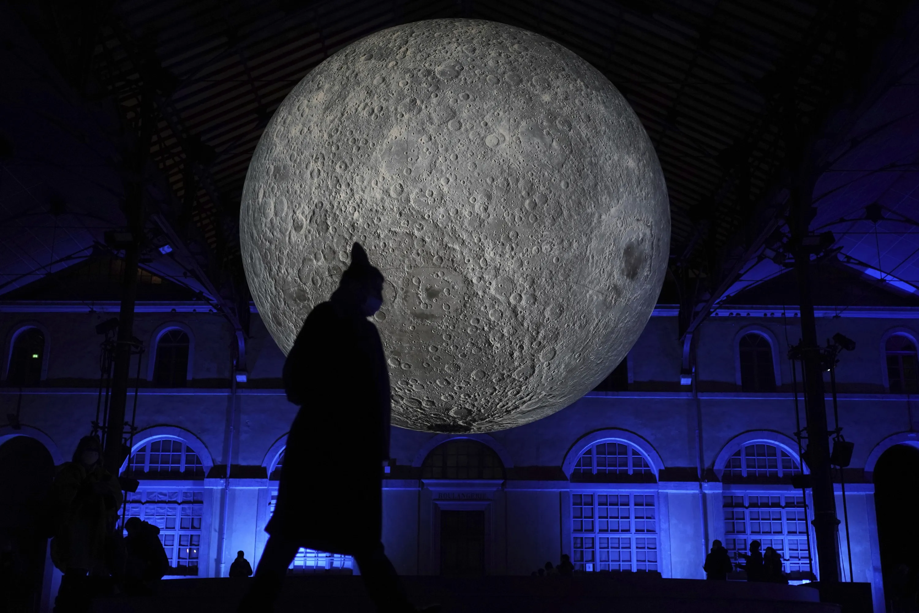 A man passes by a night light show in Lyon, central France, Wednesday, December 8, 2021. Millions of people are expected to experience the four-day Festival of Lights event in the city. (Photo by Laurent Cipriani/AP Photo)