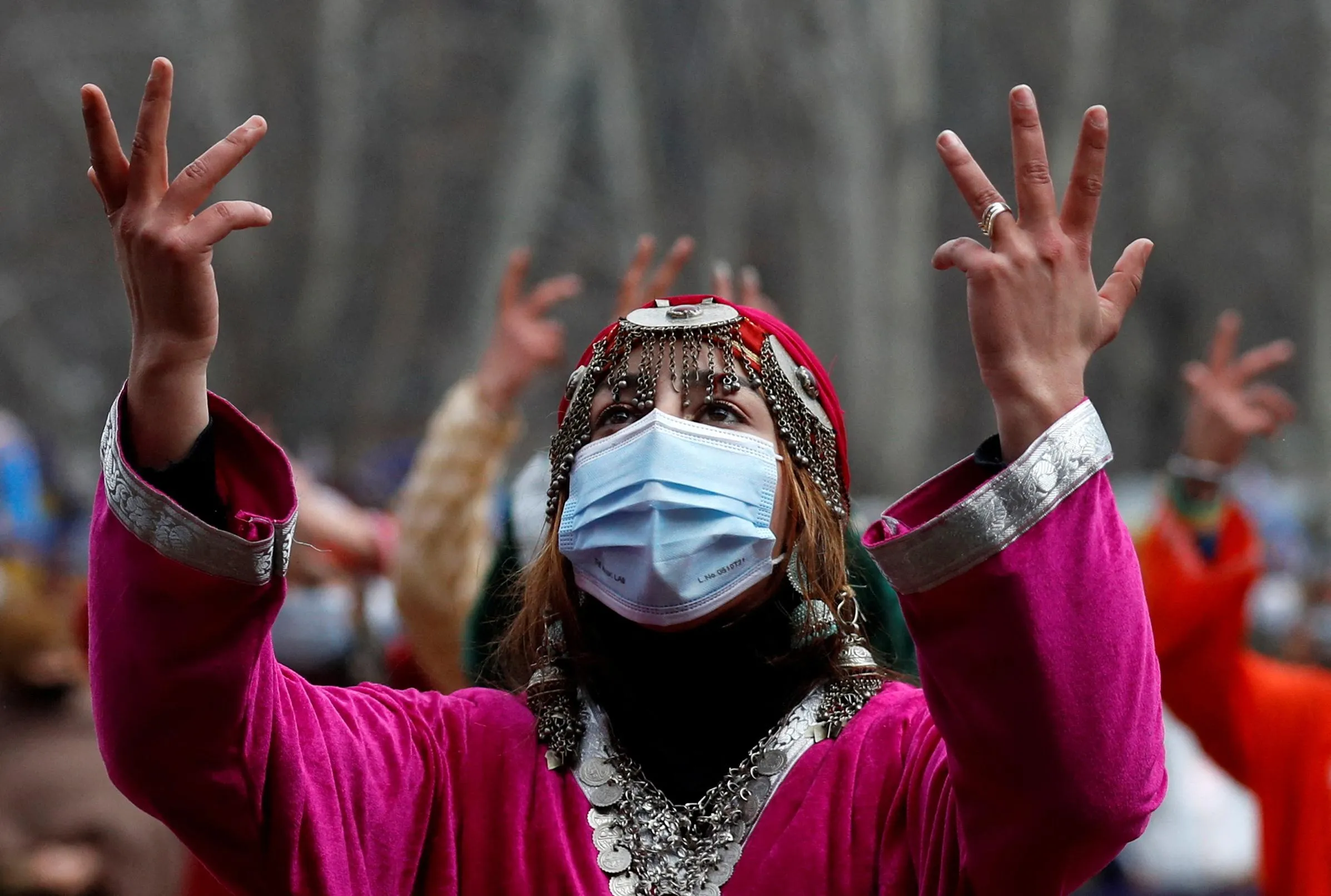 A participant wearing a protective face mask performs during India's Republic Day celebrations in Srinagar on January 26, 2022. (Photo by Danish Ismail/Reuters)