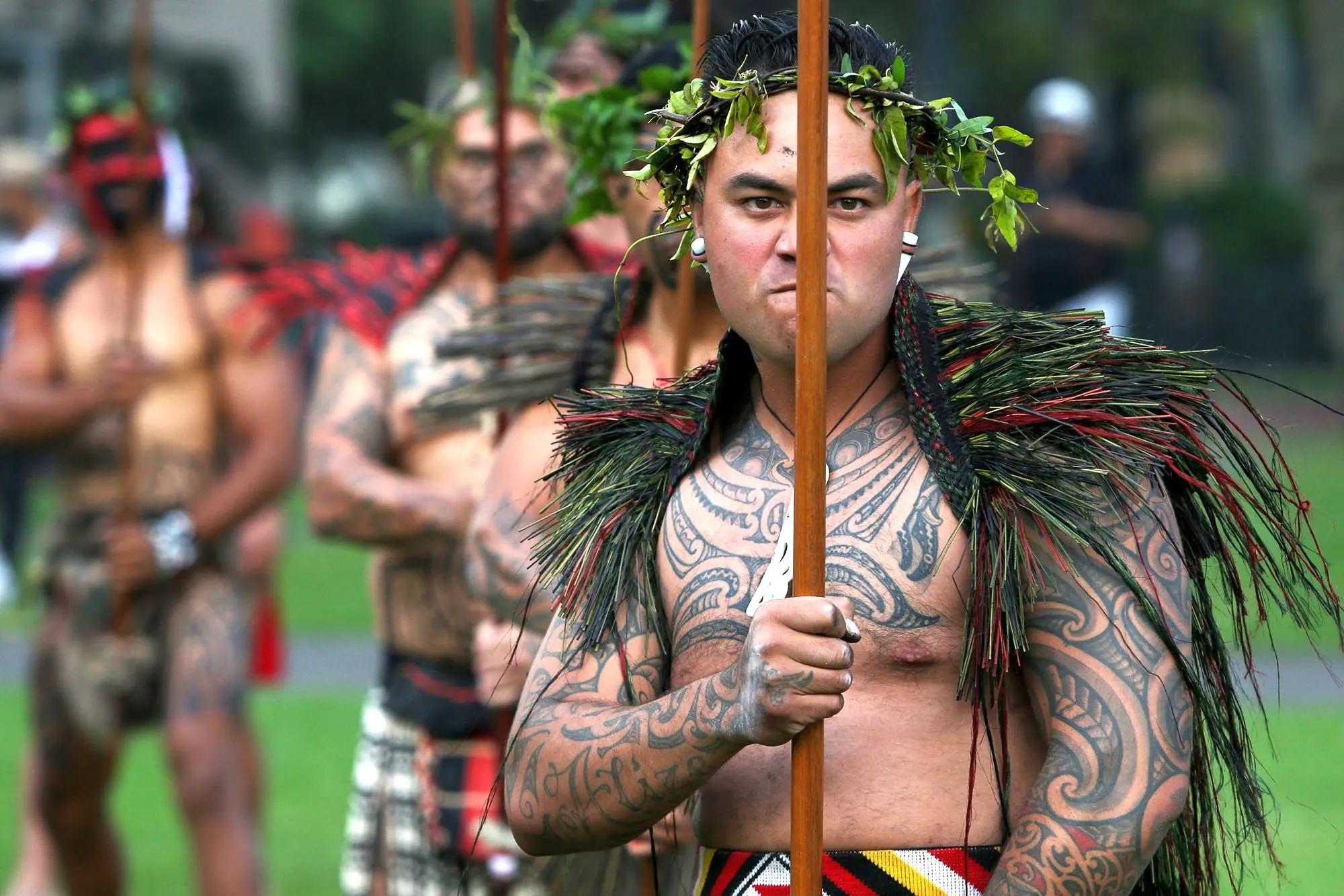 Members of Haka for Life and Māori leaders welcome dignitaries during a Anzac day service at Redfern on April 25, 2021 in Sydney, Australia. The Coloured Diggers Service is the only service of its kind in Australia that firstly honours the First Nations People of Australia & Indigenous Māori for their contribution to the protection of Australia & New Zealand, dating back to the first Boer War in 1880. Crowds are limited at services across the country, while Perth events were cancelled due to lockdown restrictions following a community COVID-19 outbreak. Anzac Day commemorates the day the Australian and New Zealand Army Corp (ANZAC) landed on the shores of Gallipoli on April 25, 1915, during World War 1. (Photo by Lisa Maree Williams/Getty Images)