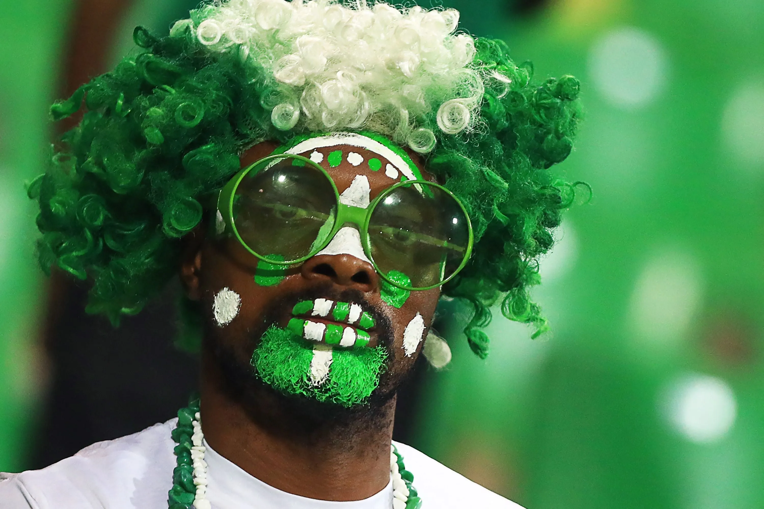 A Nigeria supporter poses prior to the Africa Cup of Nations (CAN) 2021 round of 16 football match between Nigeria and Tunisia at Stade Roumde Adjia in Garoua on January 23, 2022. (Photo by Daniel Beloumou Olomo/AFP Photo)