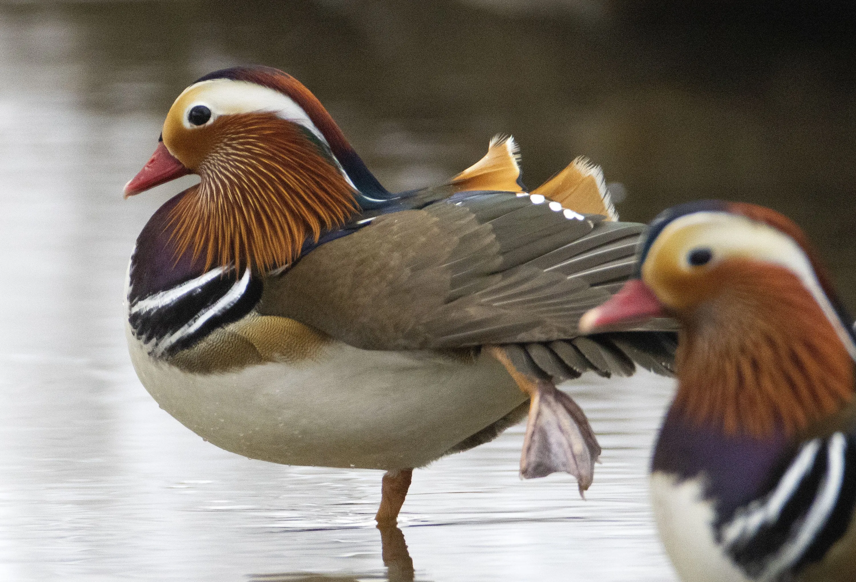 Mandarin ducks are seen at the Altufyevo nature reserve in northern Moscow, Russia on January 23, 2022. Mandarin ducks are listed in the Russian Red Book as an endangered species. (Photo by Vasily Fedosenko/TASS)