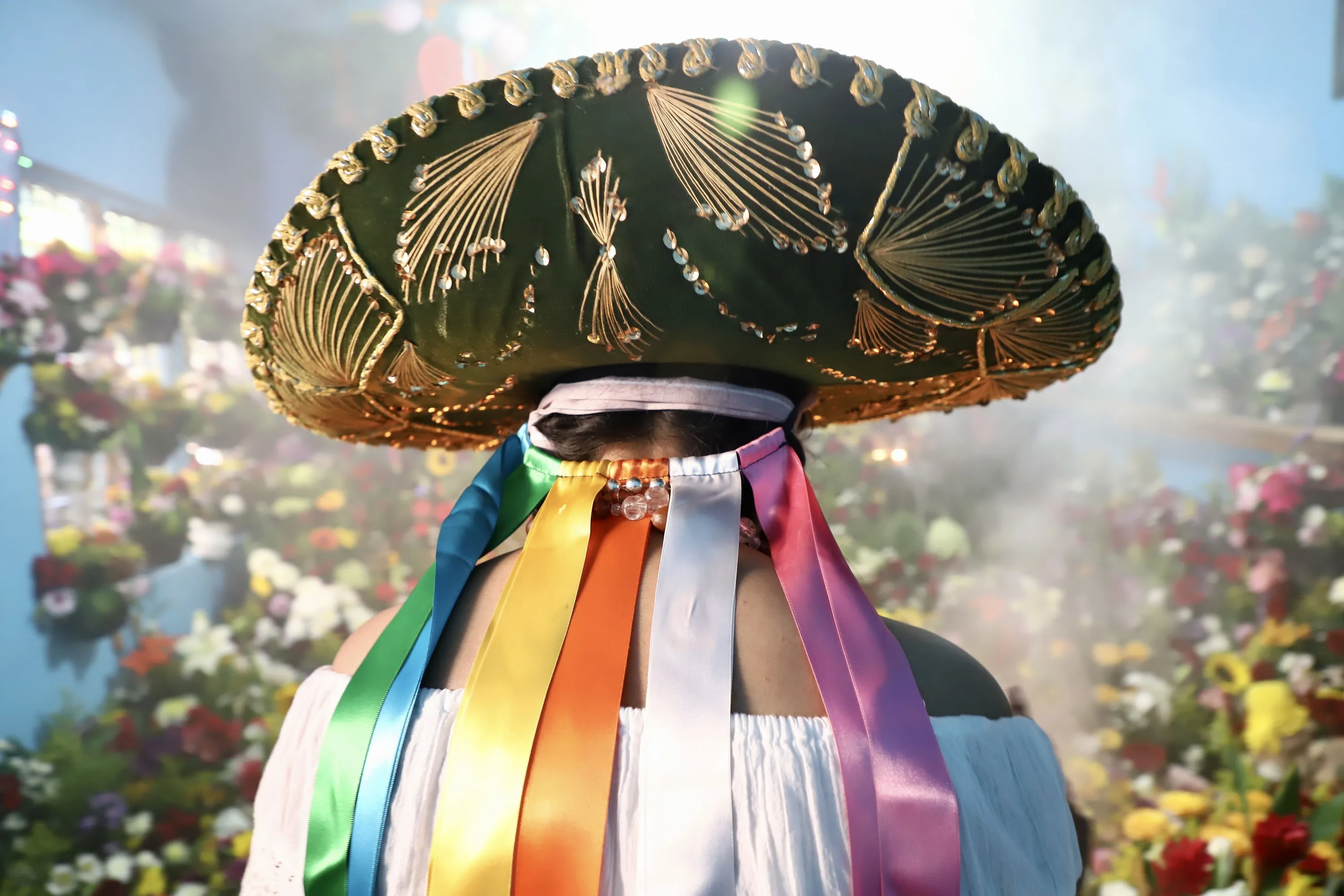 People participate in the Candlemas Day in San Fernando, Chiapas on February 02, 2022. Inhabitants of the Zoque region defy Covid-19 despite the prohibitions of the federal and state authorities on not holding massive events; Mainly men, women and girls, went out to the hermitages to dance in honor of Candlemas Day. The dances are to ask for the good rains and harvests of the year. (Photo by Jacob Garcia/Anadolu Agency via Getty Images)