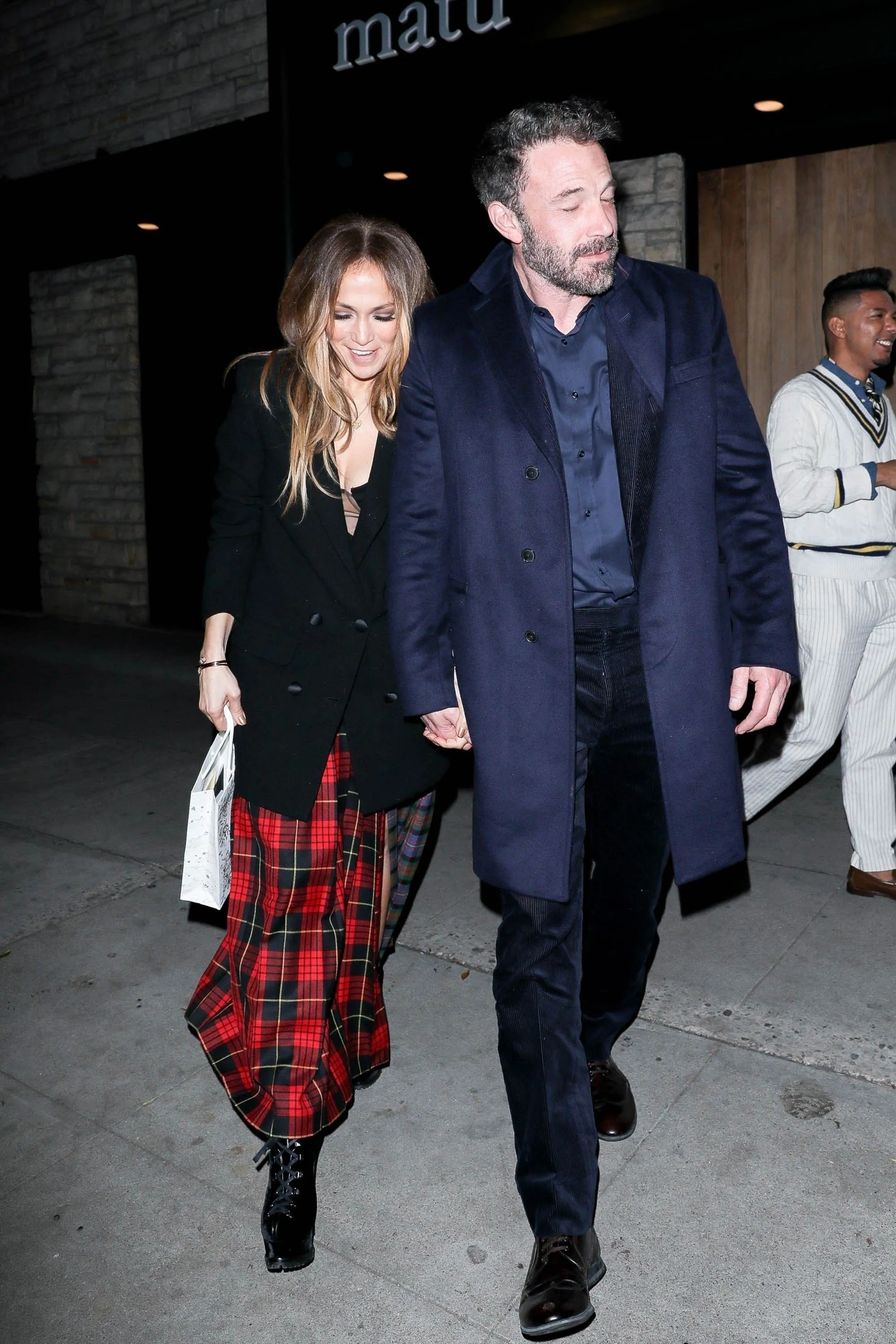 Jennifer Lopez and Ben Affleck are in good spirits after a romantic date night in Beverly Hills on January 31, 2022. The happy couple are seen hugging people goodbye as they walk towards their car to leave. (Photo by Backgrid USA)