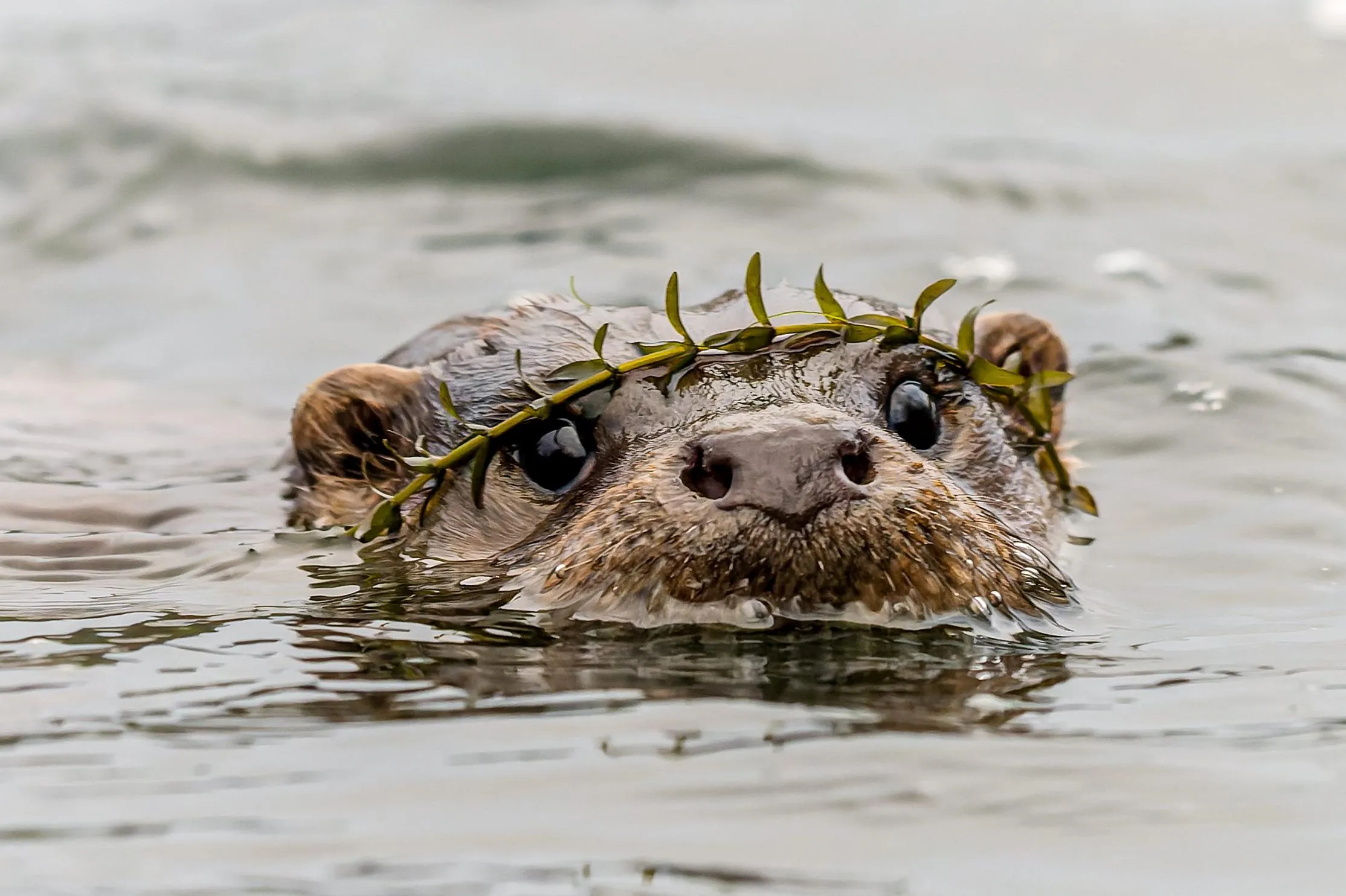 An otter comes up for air while swimming in the River Itchen near Winchester, Hampshire last decade of January 2022. (Photo by Daniel Lowth/Solent News)