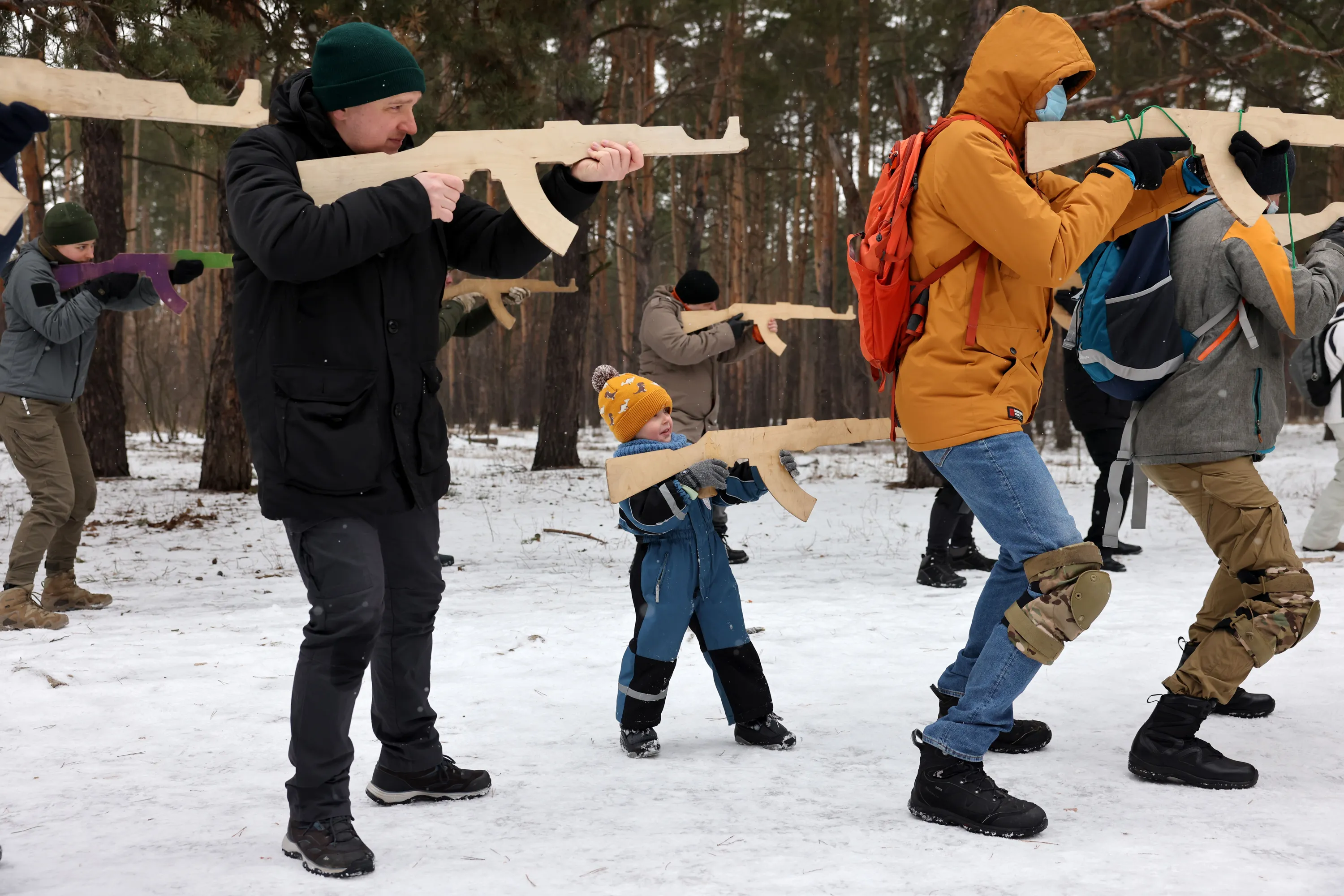 Members of Ukraine's Territorial Defense Forces, volunteer military units of the Armed Forces, train close to Kyiv, Ukraine, Saturday, February 5, 2022. (Photo by Doug Seeburg/The Sun)