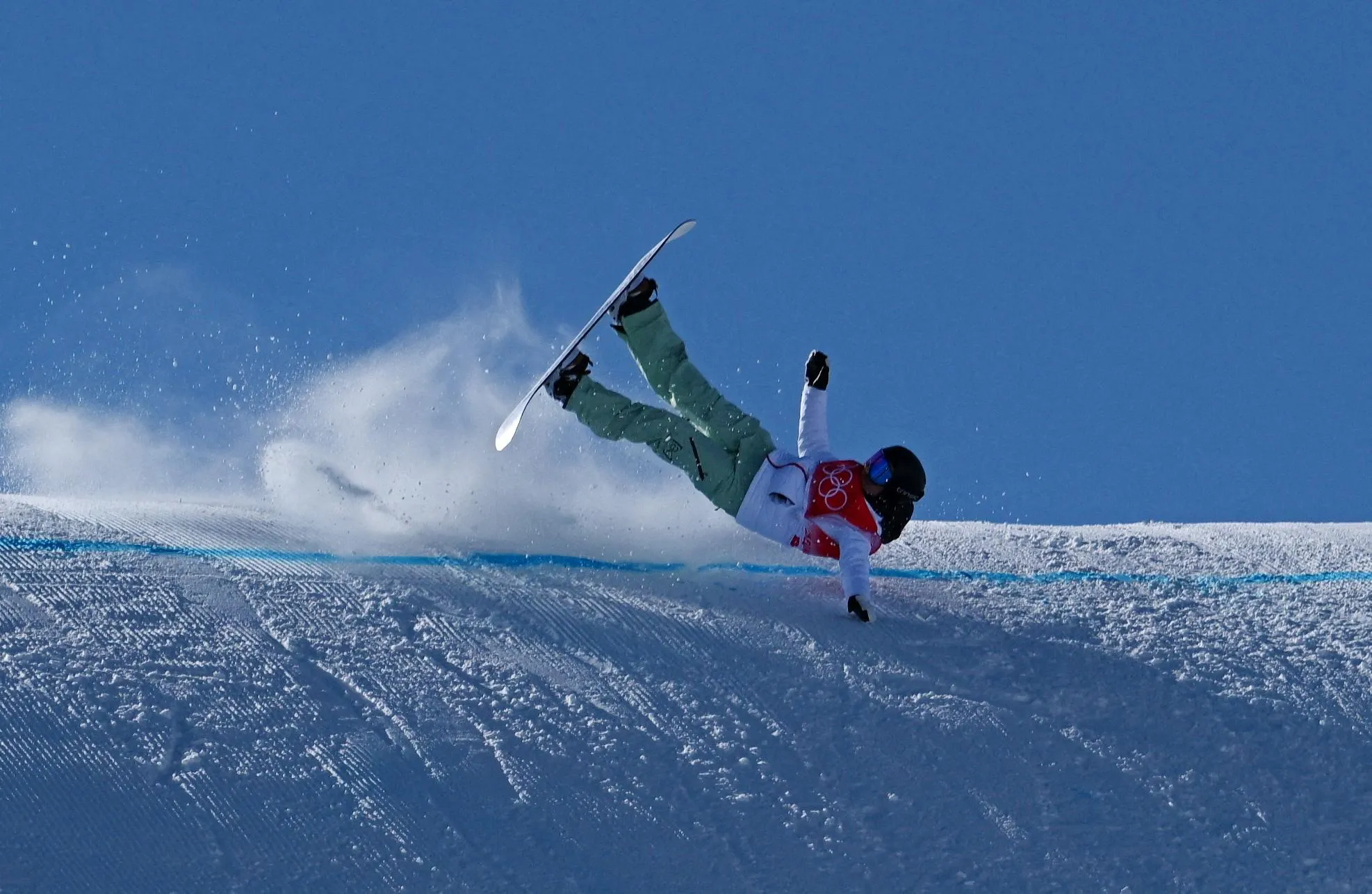 Kamilla Kozuback of Team Hungary crashes during the Women's Snowboard Slopestyle Qualification on Day 1 of the Beijing 2022 Winter Olympic Games at Genting Snow Park on February 05, 2022 in Zhangjiakou, China. (Photo by Dylan Martinez/Reuters)