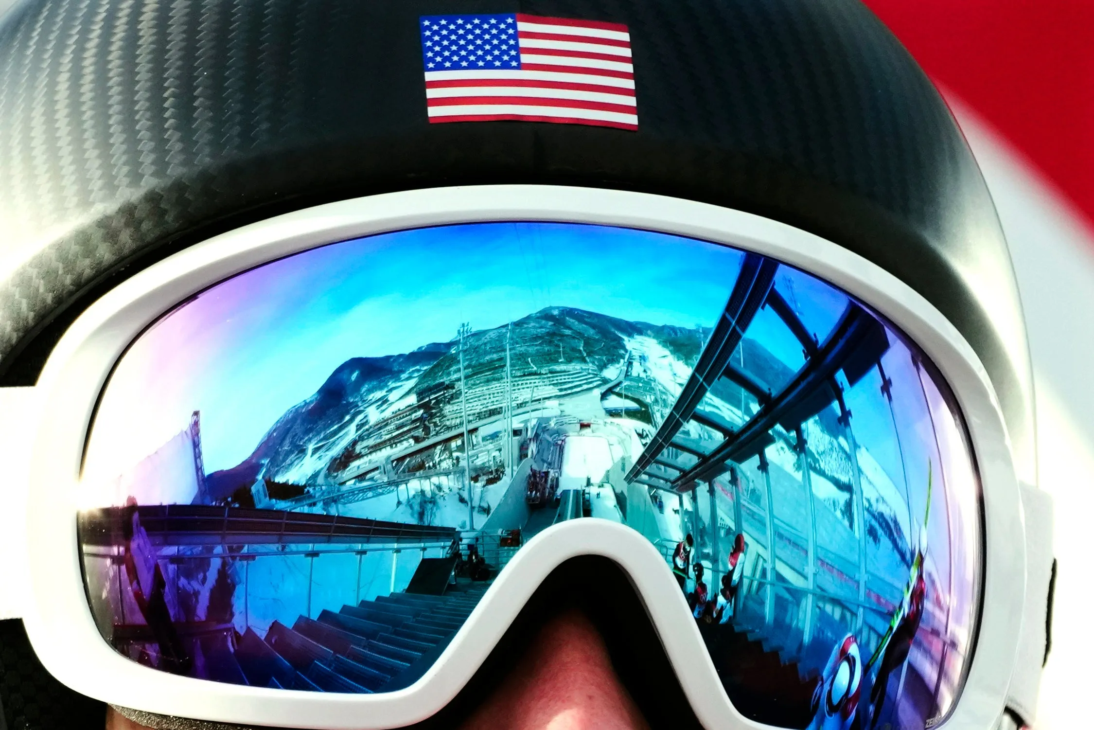 Ben Loomis, of the United States, prepares for his jump during a ski jumping training session in the Gundersen normal hill Nordic Combined event at the 2022 Winter Olympics, Monday, February 7, 2022, in Zhangjiakou, China. (Photo by Andrew Medichini/AP Photo)