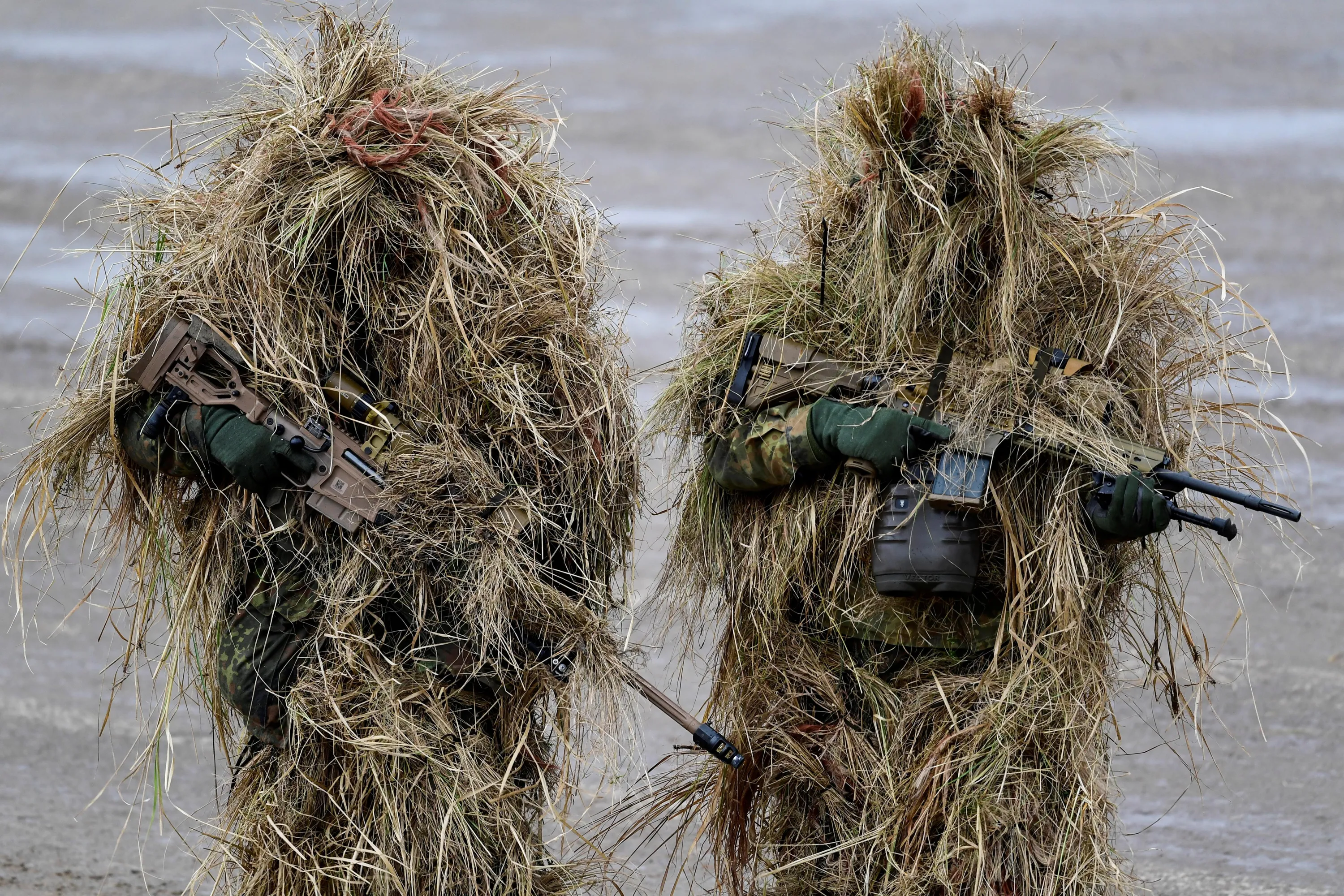 Two snipers of the German army Bundeswehr present their weapons during German Defence Minister Christine Lambrecht's visit to Munster military base, in Munster, Germany, February 7, 2022. (Photo by Fabian Bimmer/Reuters)