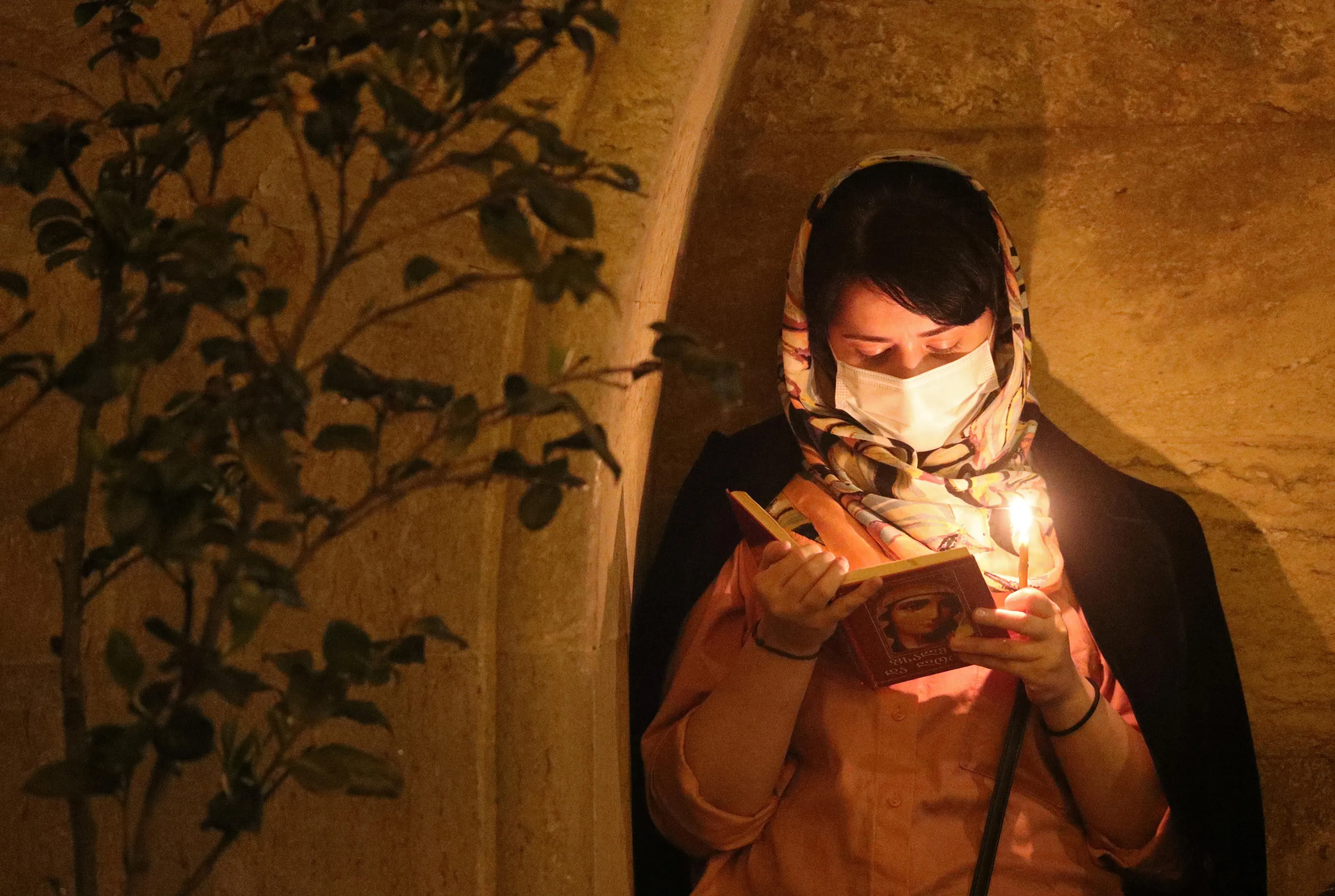 A worshipper attends the Orthodox Easter service at Sioni Cathedral of the Dormition in Tbilisi, Georgia on May 2, 2021. (Photo by Irakli Gedenidze/Reuters)
