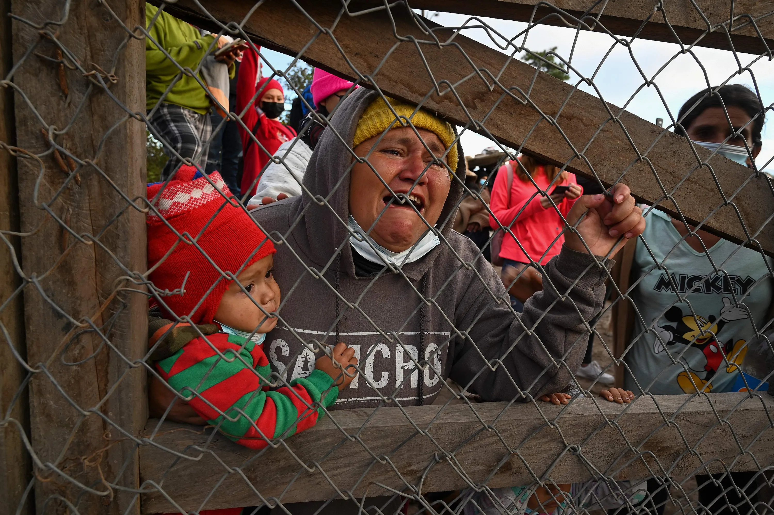A woman cries during an eviction at Tierra del Padre, a Lenca indigenous community between the municipalities of Ojojona and San Buenaventura, Francisco Morazan department, Honduras, on February 9, 2022. (Photo by Orlando Sierra/AFP Photo)