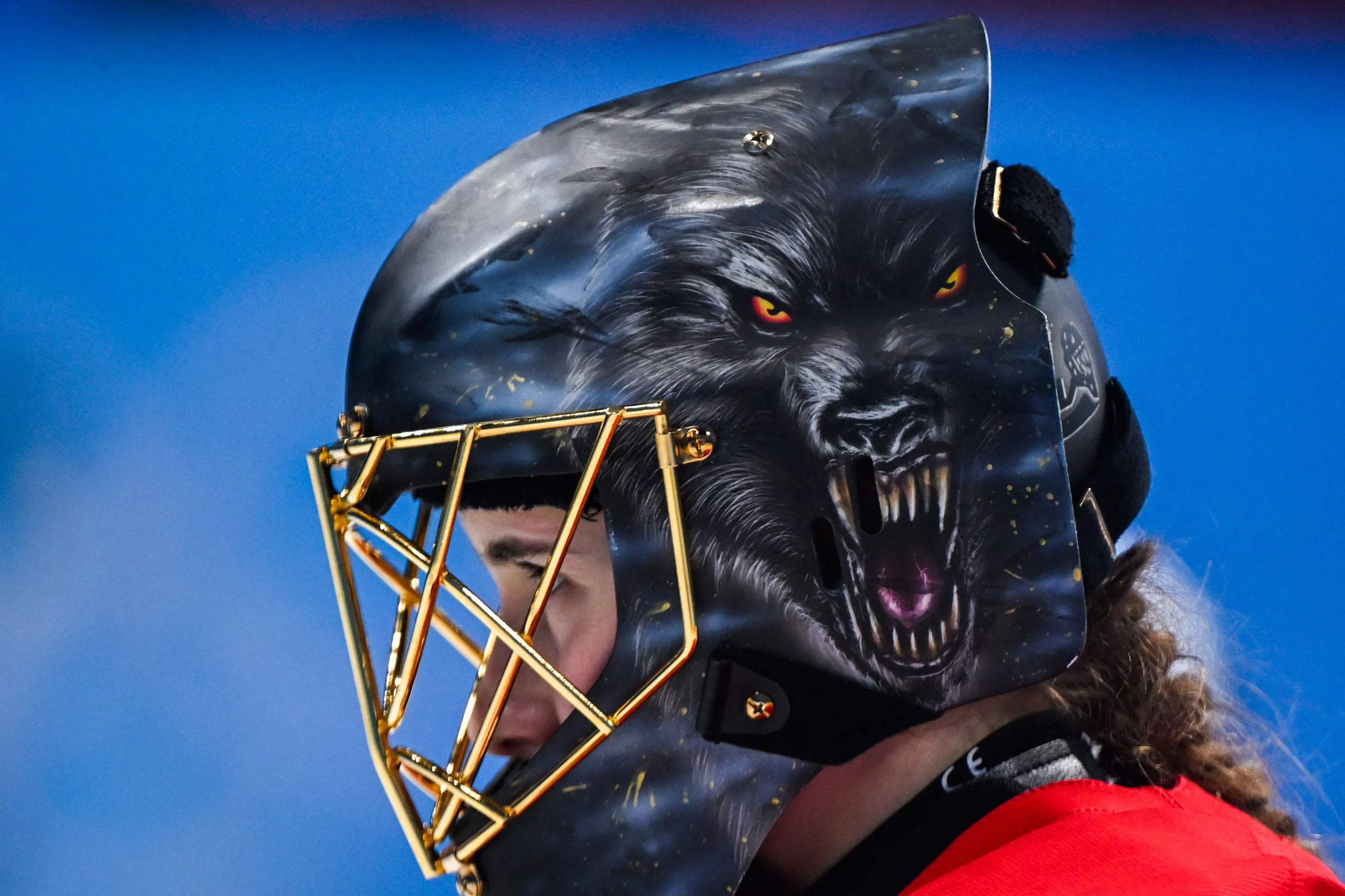 Switzerland's goaltender Saskia Maurer walks to the goalpost during the women's play-offs semifinal match of the Beijing 2022 Winter Olympic Games ice hockey competition between Canada and Switzerland, at the Wukesong Sports Centre in Beijing on February 14, 2022. (Photo by Gabriel Bouys/AFP Photo)