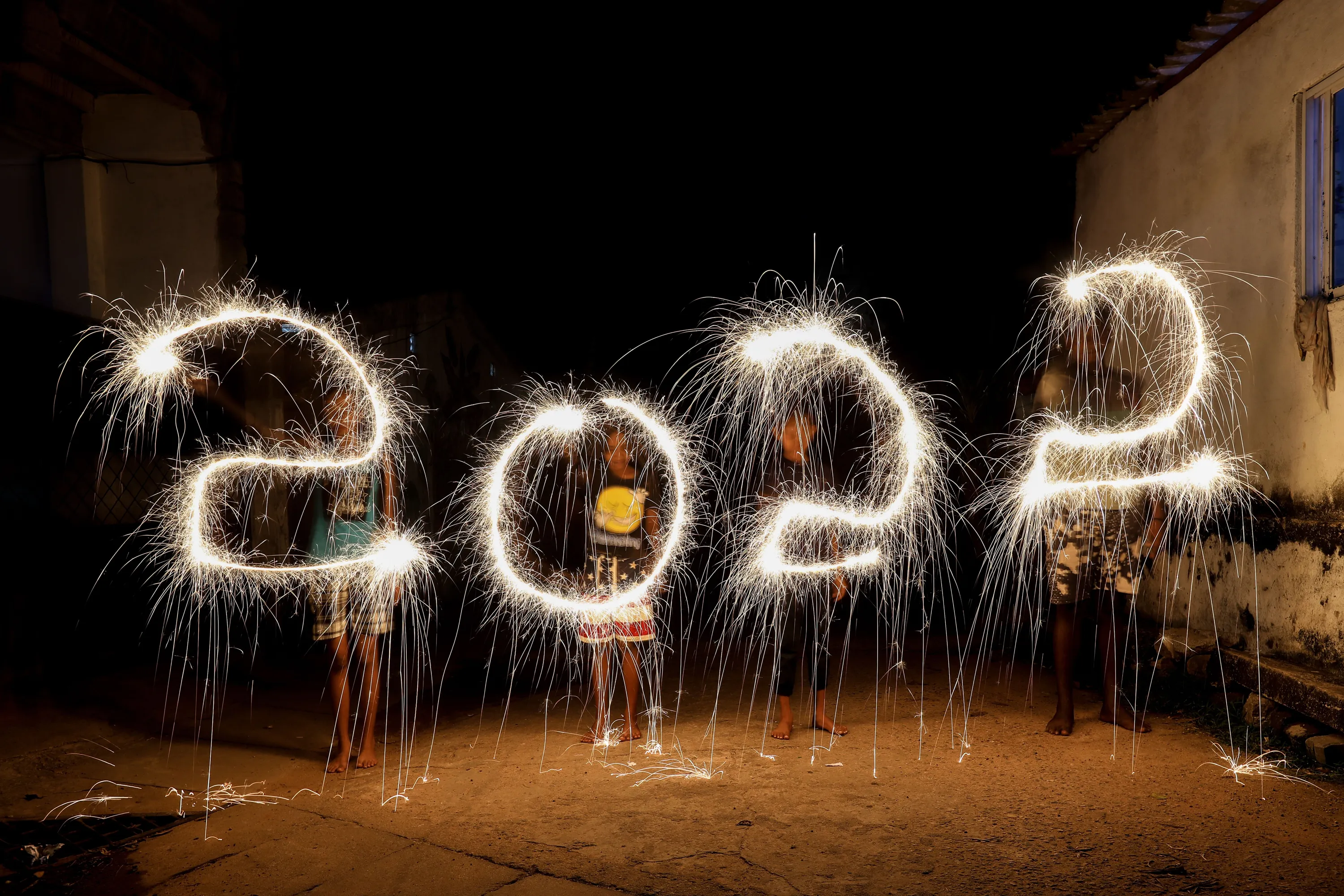 A slow shutter speed picture showing Sri Lankan children's writing «2022» with firecrackers during New Year's celebrations in Colombo, Sri Lanka, 31 December 2021. (Photo by Chamila Karunarathne/EPA/EFE)
