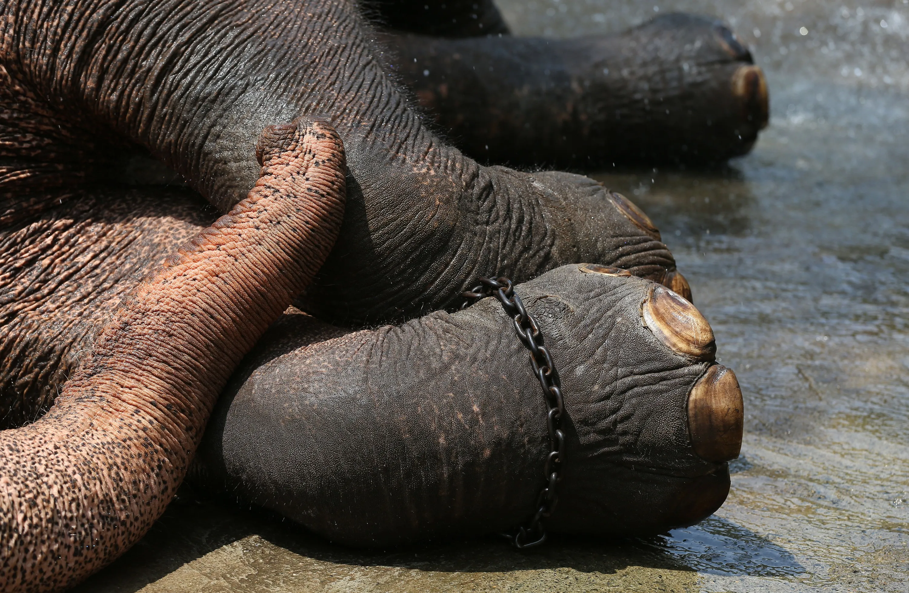 A Mahout cleans an elephant at a public park ahead of the nawam maha Perahera in colombo, Sri Lanka, on February 15, 2022. The Nawam Maha Perahera will be held on February 15 and 16 at the Gangarama Viharaya in Colombo. (Photo by Pradeep Dambarage/ZUMA Press Wire/Rex Features/Shutterstock)