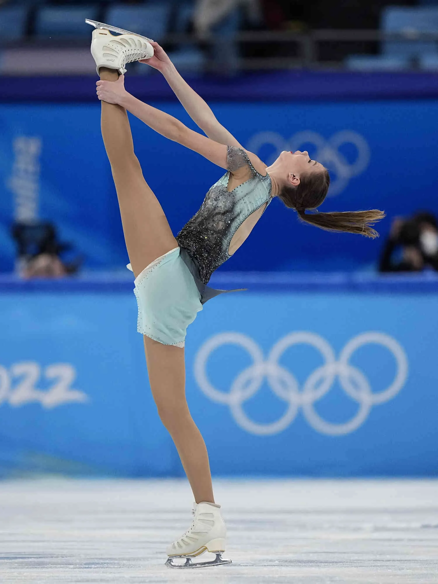 Viktoriia Safonova, of Belarus, competes in the women's short program during the figure skating at the 2022 Winter Olympics, Tuesday, February 15, 2022, in Beijing. (Photo by David J. Phillip/AP Photo)