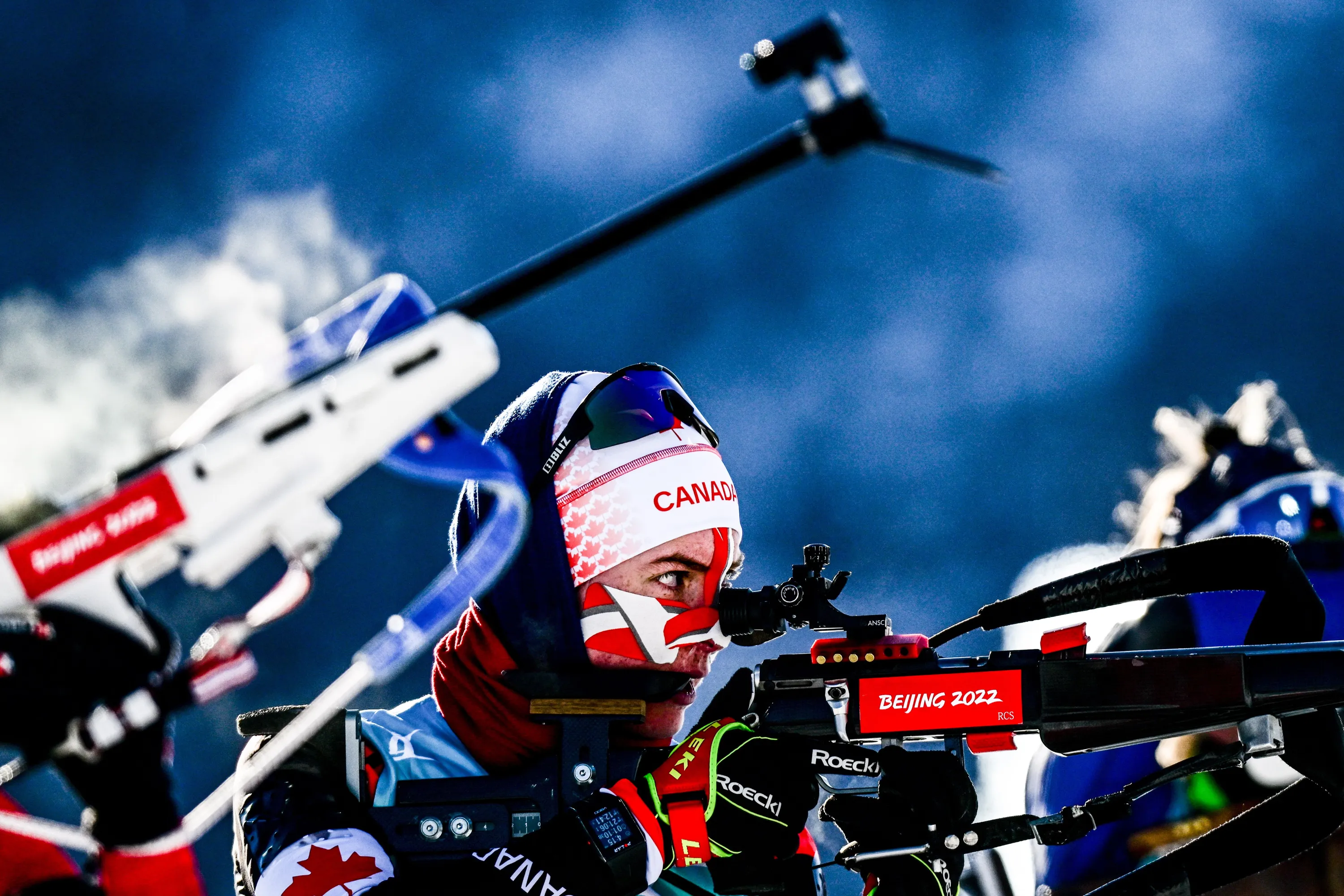 Canada's Megan Bankes competes in the Biathlon Women's 4x6km Relay event, on February 16, 2022 at the Zhangjiakou National Biathlon Centre, during the Beijing 2022 Winter Olympic Games. (Photo by Filip Singer/EPA/EFE)
