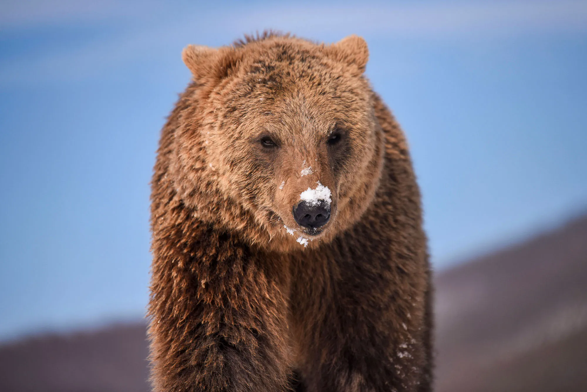 A brown bear walks through the snow at the Pristina bear sanctuary near the village of Mramor on February 2, 2022. (Photo by Armend Nimani/AFP Photo)